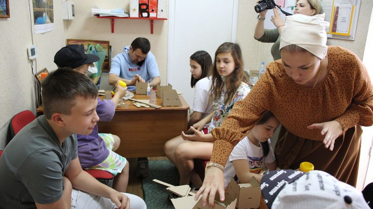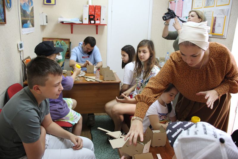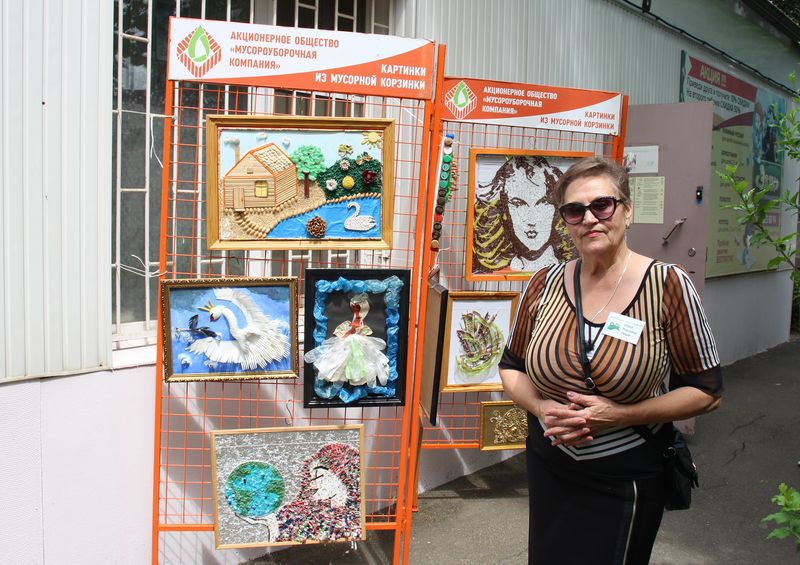 Поддержать конкурсантку приехал руководитель пиар-службы АО «Мусороуборочная компания» Елена Штеля, которая совместно со специалистами открыли выставку картин из вторсырья «Картинки из мусорной корзинки» и провели мастер-класс по созданию роботов из картона.