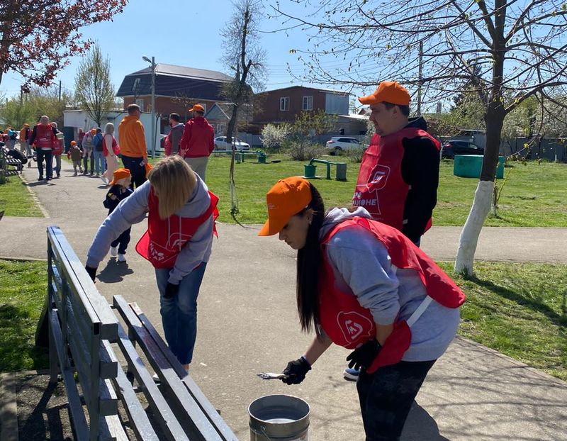 Участники субботника распилили упавшие деревья, собрали и вывезли мусор, покрасили детские площадки и ограждения зеленых зон, посадили деревья и кустарники, закрасили граффити и засеяли газоны.