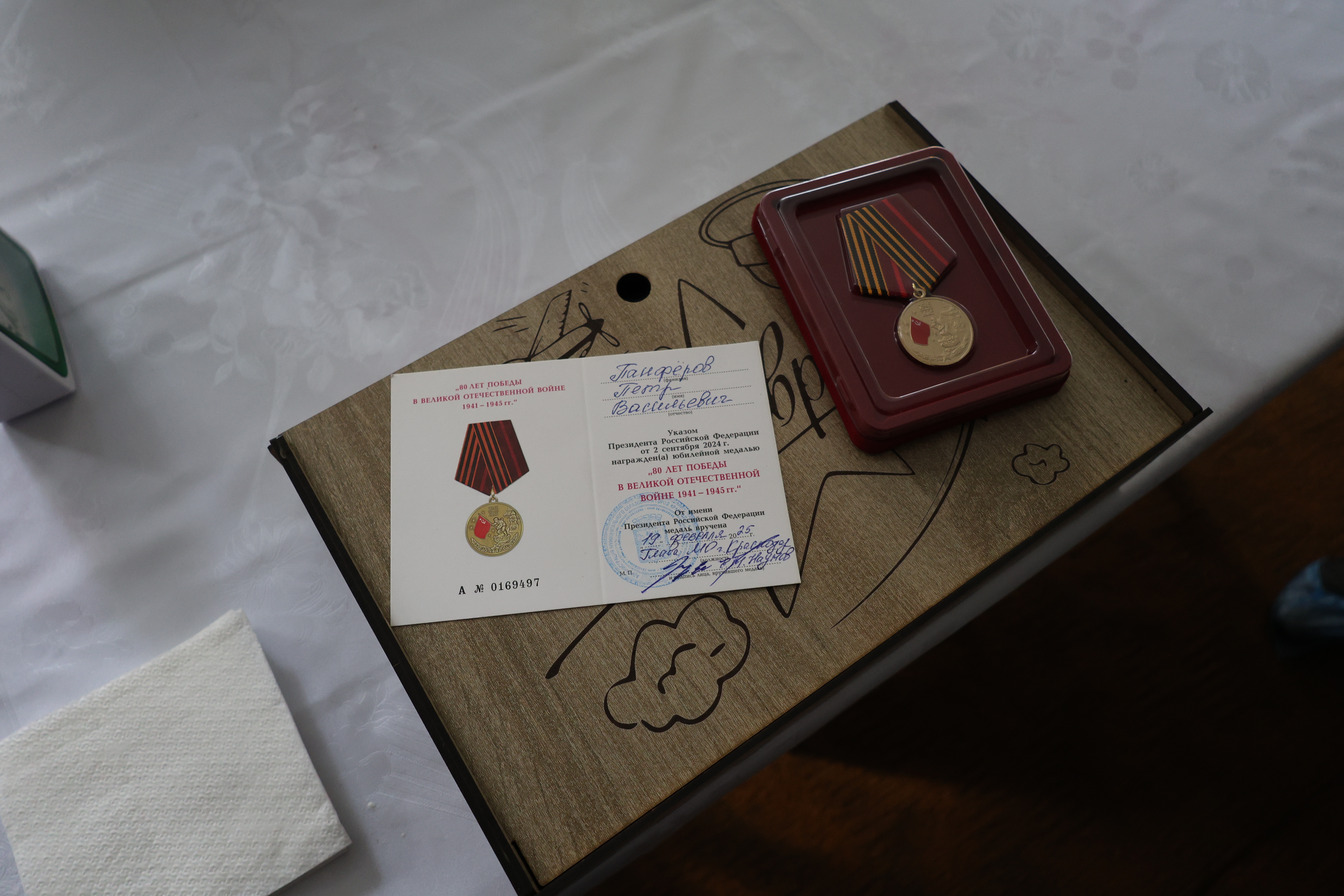 Руководство администрации Центрального округа посещают фронтовиков на дому и вручают юбилейные медали.