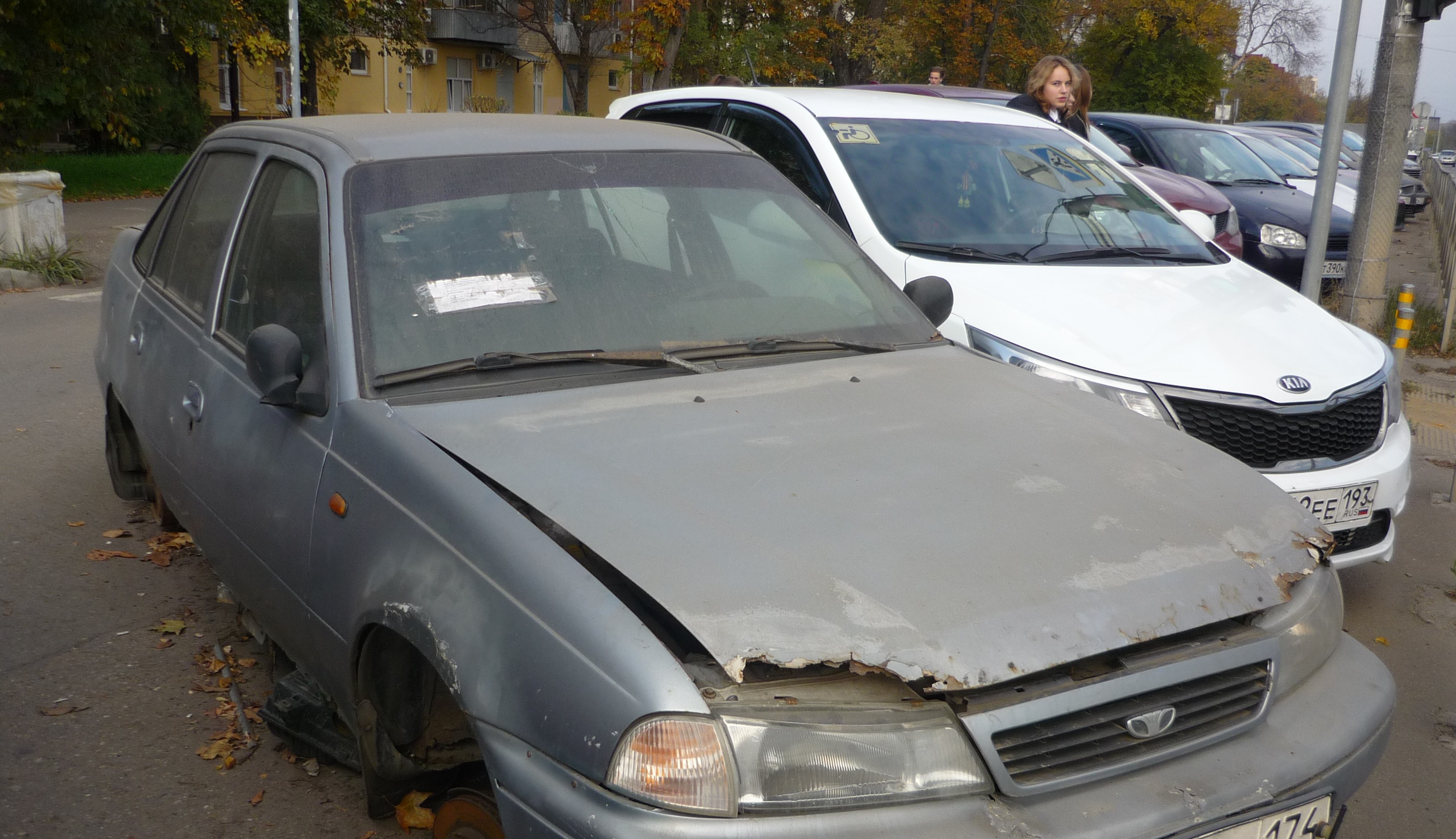 29 декабря 2025На этот раз «очистке» подверглась автопарковка на улице Старокубанской, 109. Серебристая Daewoo Nexia, скорее напоминавшая грустный каркас, находилась в состоянии полного «распада»: лишённая колёс, с проржавевшим и прогнившим капотом, а её салон был разорён — сидений в нём не осталось вовсе.