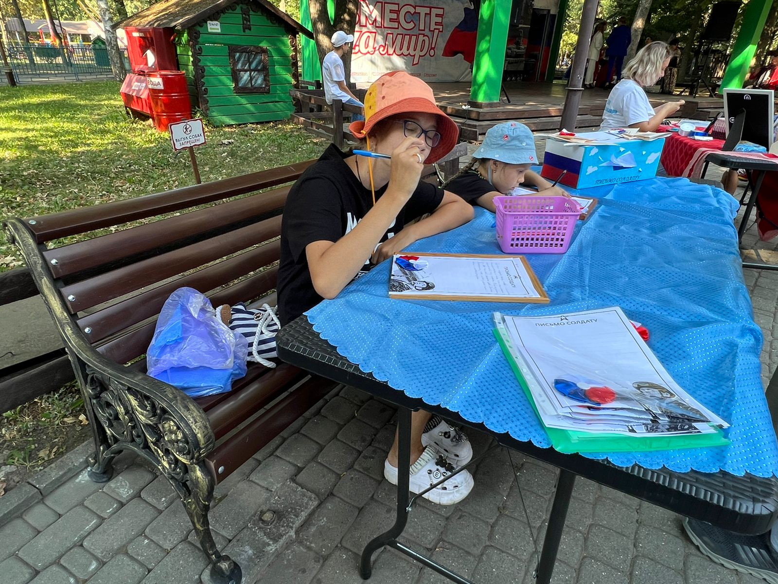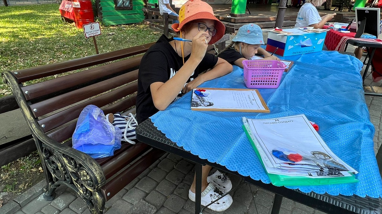 Помимо праздничного концерта на центральной площадке парка проходила патриотическая акция. Желающие могли принять участие в мастер-классе по изготовлению броши в цветах российского флага и написать "письмо солдату" – военнослужащим, участвующим в специальной военной операции.