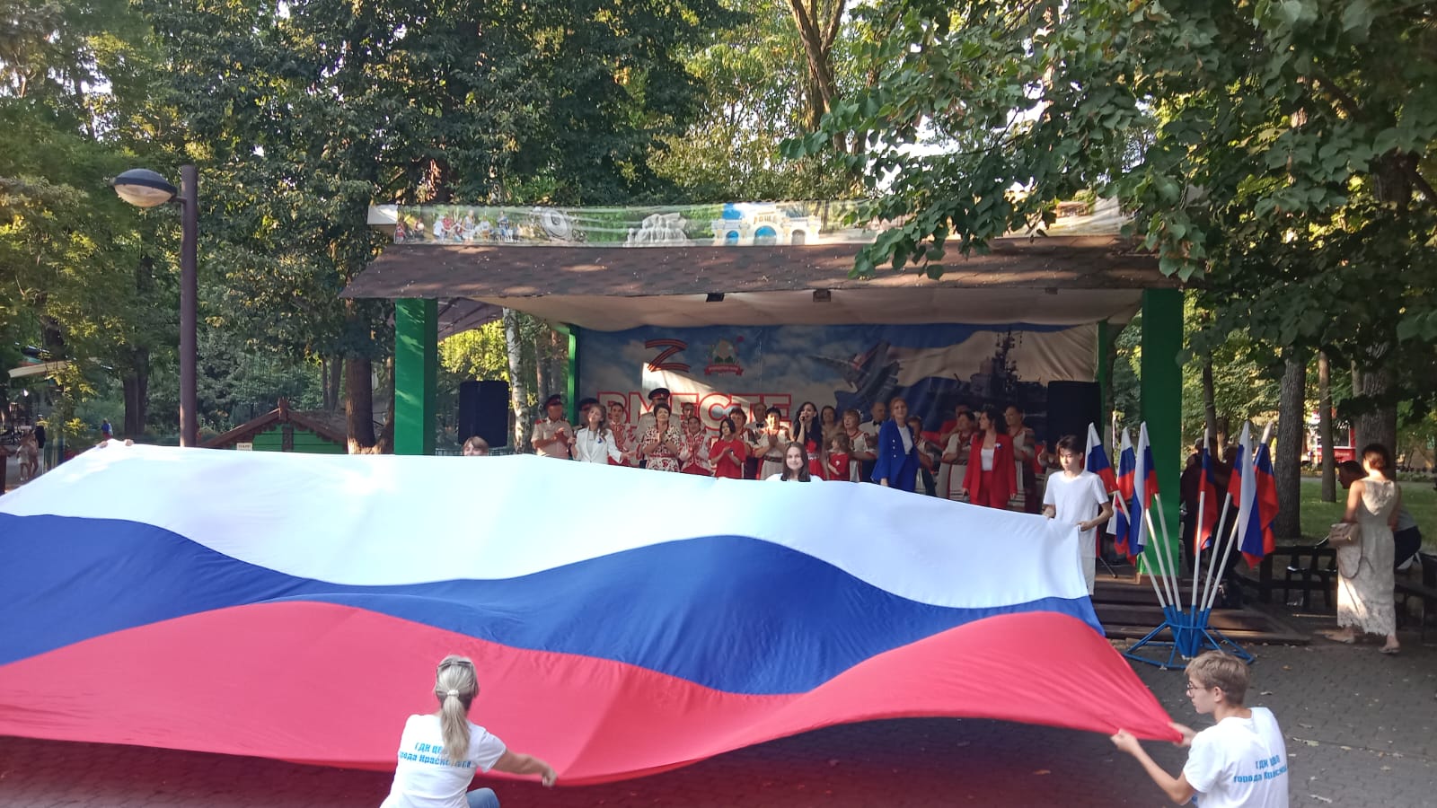 В завершение на площади развернули триколор площадью в десятки квадратных метров.