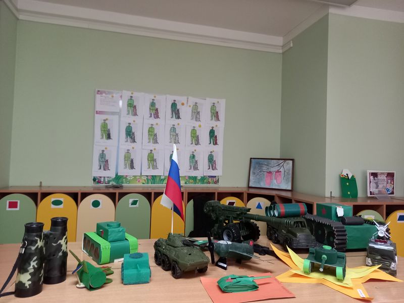 Кульминацией праздничных мероприятий стала тематическая выставка декоративно-прикладного творчества. Дети младших, средних и старших групп вместе с родителями и педагогами своими руками смастерили танки, пушки и представили рисунки о Великой Победе.