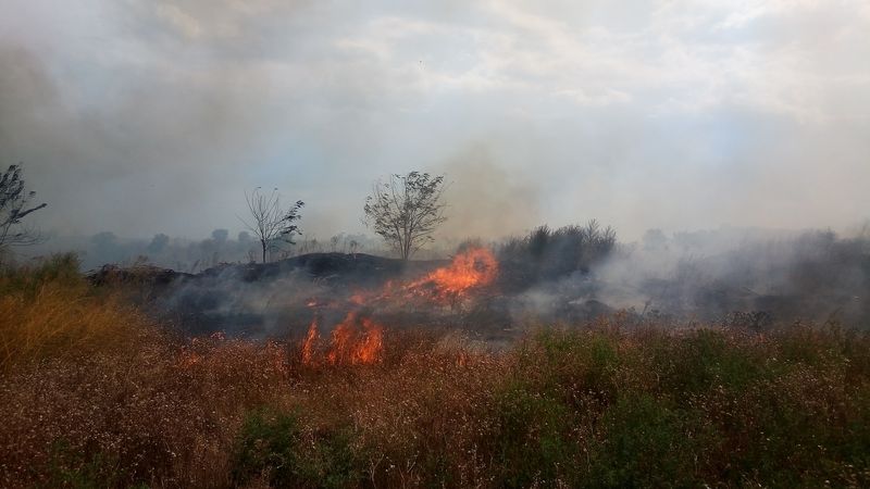 выполнить покос сухой травы;