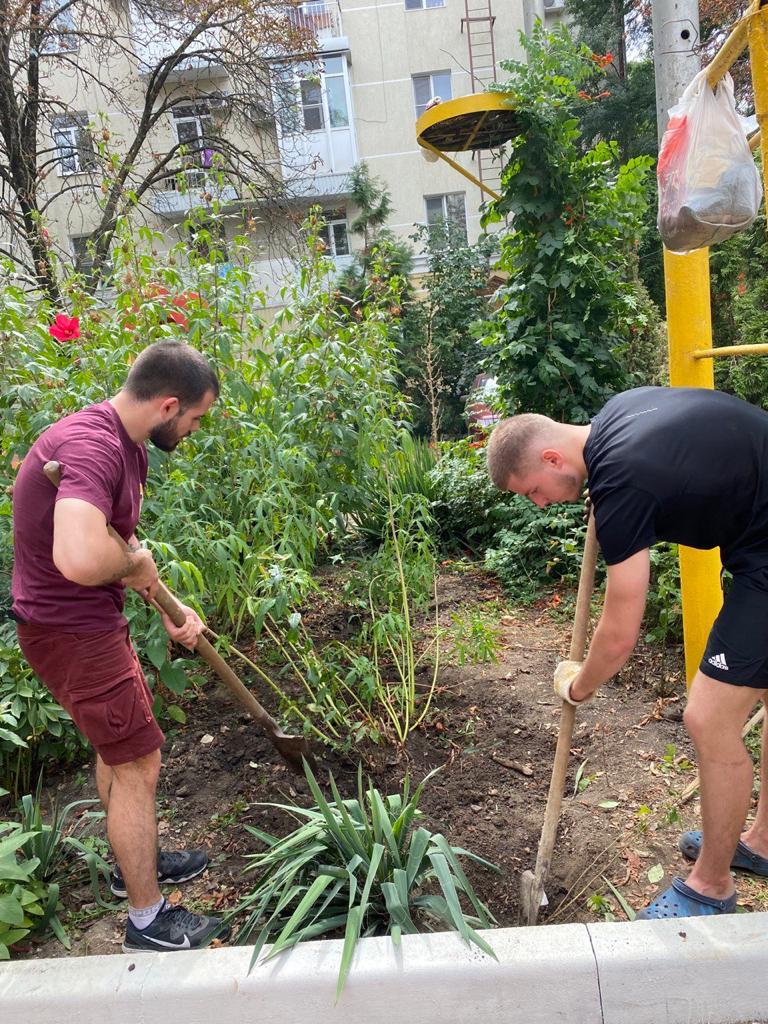 Жители многоэтажки наводили чистоту несколько часов: красили ограждения, подстригали кусты, вскапывали клумбы и убирали бросовый мусор.