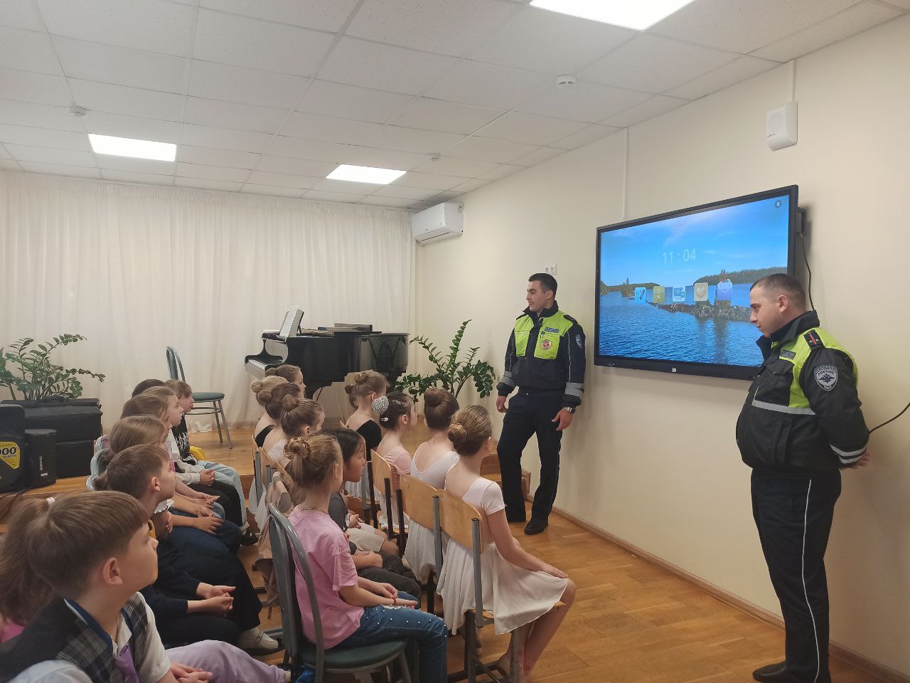 Во время встречи полицейские рассказали учащимся о важности соблюдения правил безопасности при передвижении по улицам и дорогам. Особое внимание было уделено правилам поведения в городском транспорте, а также последствиям использования гаджетов, таких как смартфоны, во время движения.