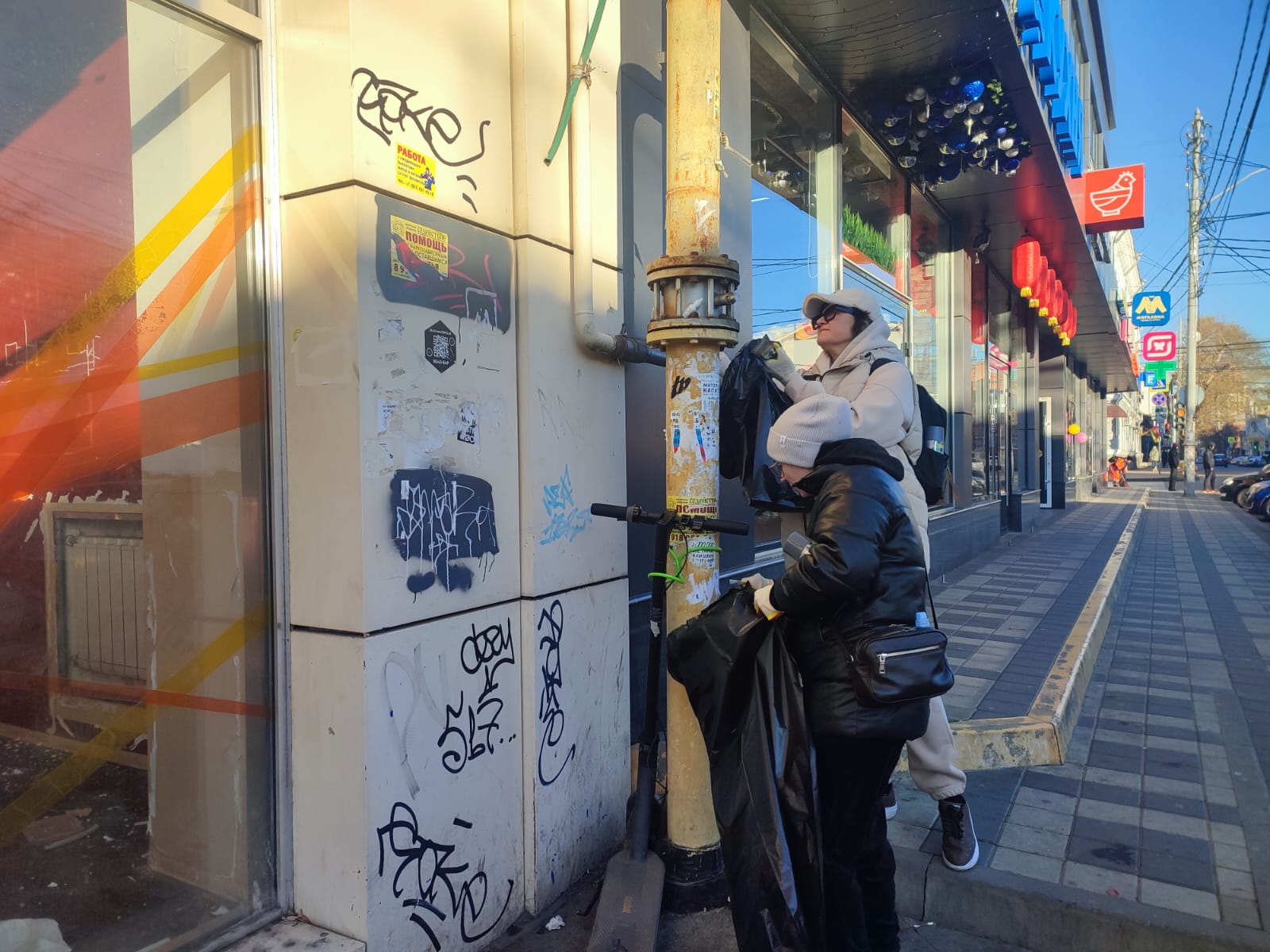 Борцы за чистоту освободили опоры, остановки общественного транспорта, фонарные столбы и линии электропередач от незаконной рекламы и объявлений. Особое внимание уделили закрашиванию неприглядных надписей.
