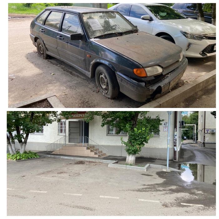 Другая машина, ВАЗ 2114, несколько месяцев была припаркована на улице Щорса рядом с домом 47. Автомобиль бросили после ДТП с поврежденным капотом, разбитыми фарами и бампером. Собственником ВАЗа оказалась автоледи, ее нашли специалисты окружной администрации совместно с сотрудниками ГИБДД по г.Краснодару. После уведомления собственница авто убрала машину.