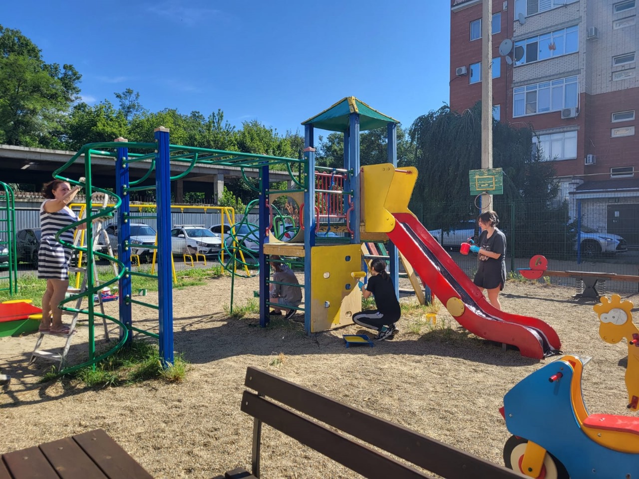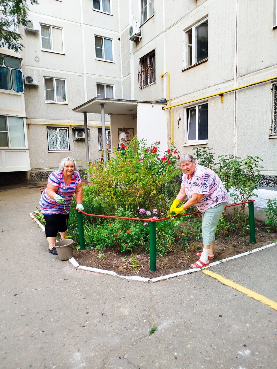 Пока муниципальные служащие трудились на улицах округа, председатели органов ТОС с командой активистов приводили в порядок дворы: красили лавочки и детские площадки, обновляли клумбы, убирали упавшую листву.