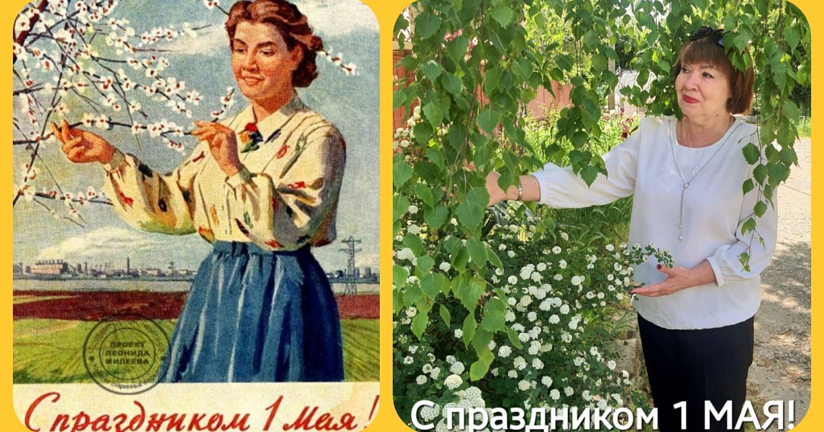Участие в акции приняли десятки человек: общественники, школьники и неравнодушные жители округа. Они воссоздали фотографии по мотивам советских плакатов и открыток, посвященных 1 Мая.