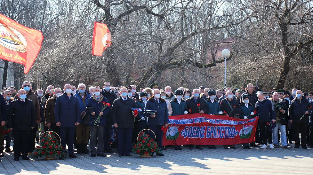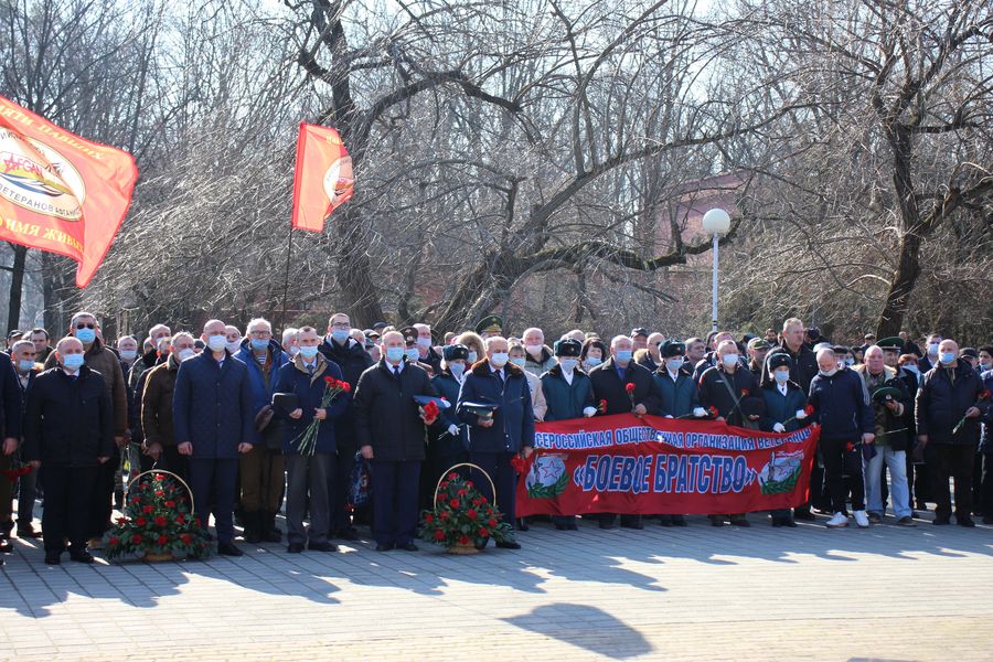 15 февраля 2022В Чистяковской роще у обелиска «Сынам Кубани, павшим в Афганистане» прошла торжественная церемония возложение цветов, посвященная 33-й годовщине вывода советских войск из Афганистана. В мероприятии приняли участие первый заместитель главы муниципального образования город Краснодар Максим Слюсарев, заместитель председателя городской Думы Краснодара Зорик Садоян, герой Советского Союза, участник боевых действий в Афганистане Григорий Хаустов, заместитель главы администрации Центрального внутригородского округа города Краснодара Александр Звягинцев, солдаты и офицеры, исполнявшие свой воинский долг, представители общественных ветеранских организаций, молодежь. Собравшиеся почтили минутой молчания память погибших героев. Военный оркестр исполнил гимны России, Кубани и Краснодара.