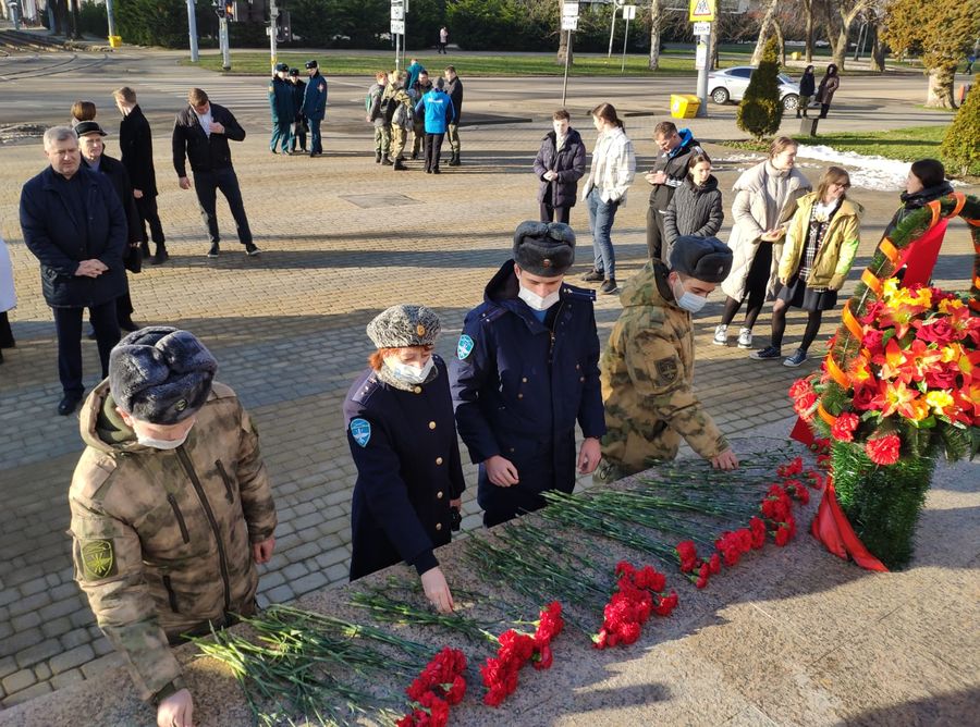 12 февраля 2022В Центральном округе отметили 79-ю годовщину освобождения города Краснодара от немецко-фашистских захватчиков. Торжественная церемония возложения состоялась 12 февраля на площади перед мемориалом «Жертвам фашизма» в Чистяковской роще. Венки и цветы к подножию мемориала возложили глава города Андрей Алексеенко, председатель городской Думы Вера Галушко, глава окружной администрации Елена Малова, начальник Краснодарского территориального гарнизона Сергей Румянцев, настоятель храма Рождества Христова отец Александр (Игнатов), депутаты Законодательного собрания края и городской Думы, представители ветеранских организаций и казаки. Память павших