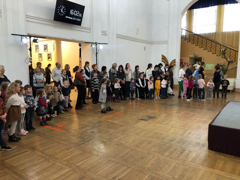 Перед спектаклем для детей прошла праздничная интермедия: ростовые куклы провели увлекательные игры, конкурсы и викторины. Затем для собравшихся прошел спектакль «Дюймовочка».