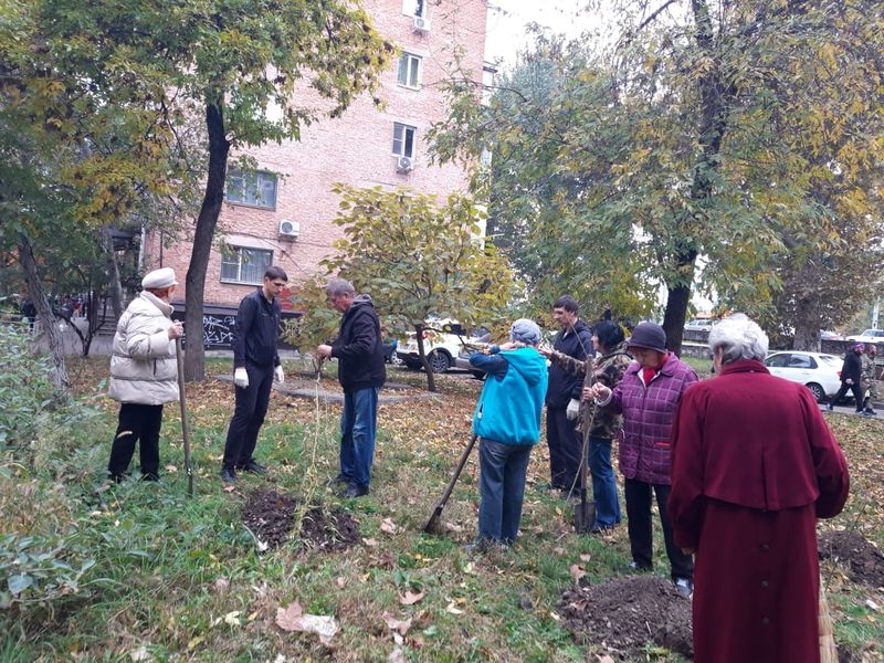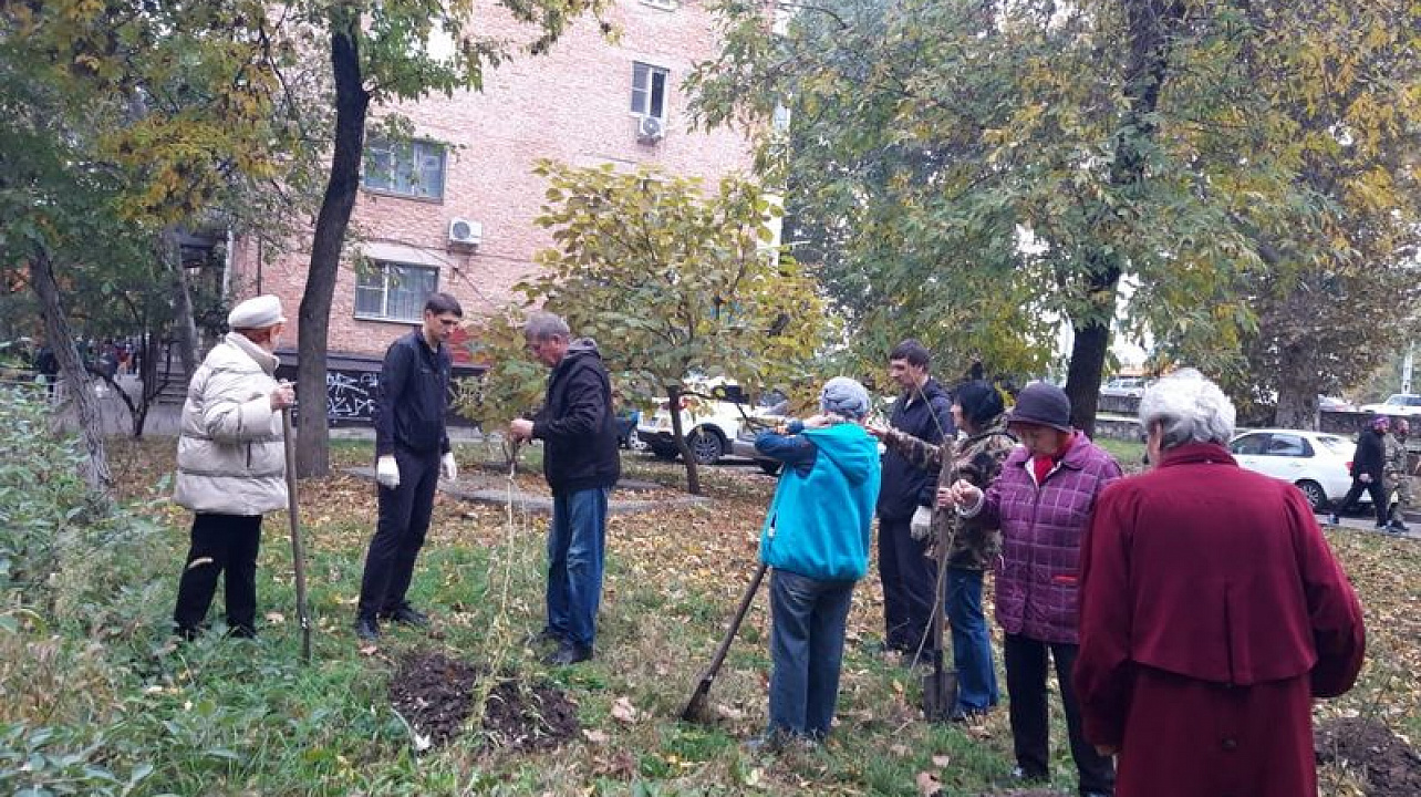 В Центральном округе продолжают высаживать деревья и кустарники