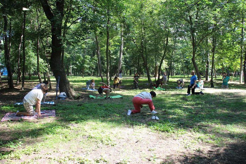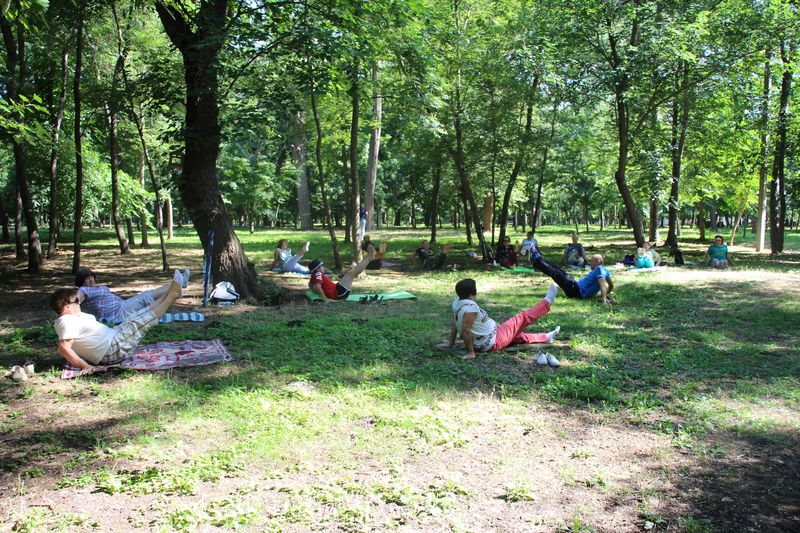 На очередных занятиях помимо общеразвивающих упражнений любители здорового образа жизни осваивали комплекс упражнений, направленных на посттравматическое восстановление мышц спины и нижних конечностей. Кроме того, особое внимание было уделено упражнениям профилактирующих ишиас.