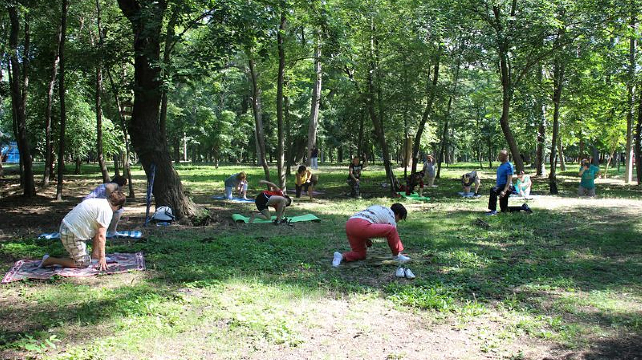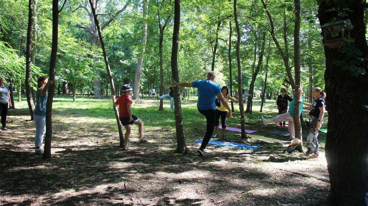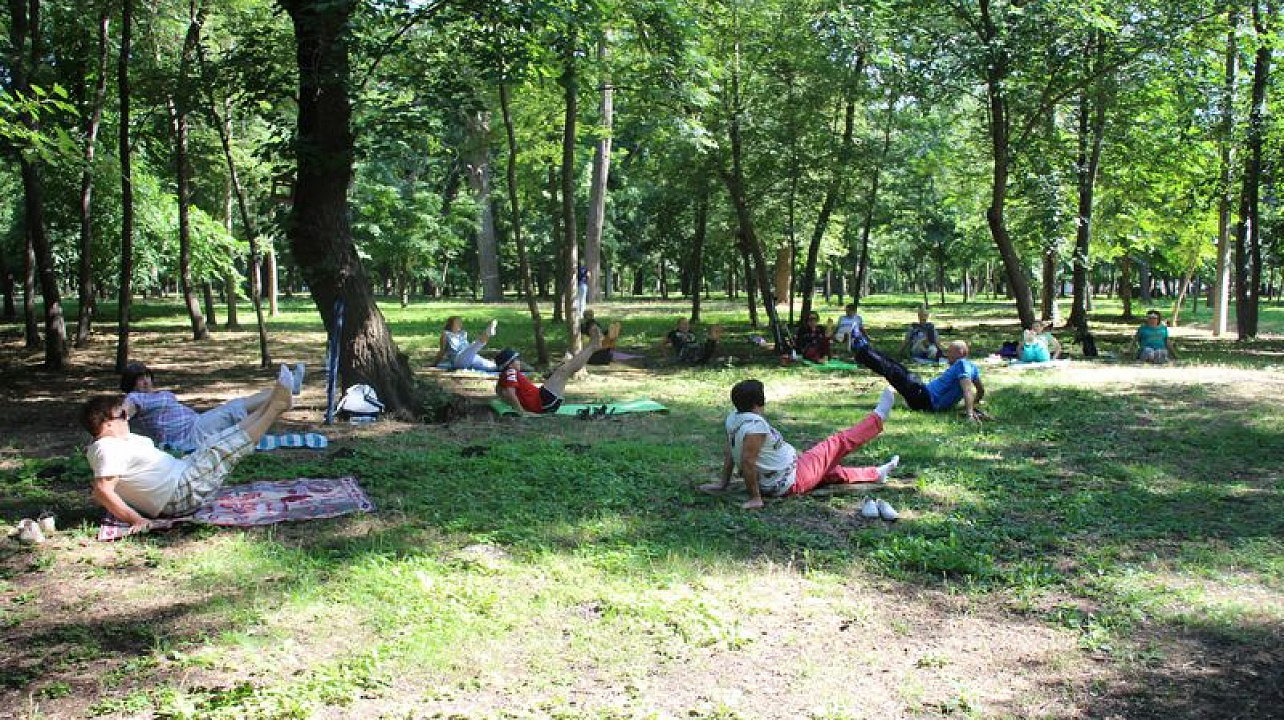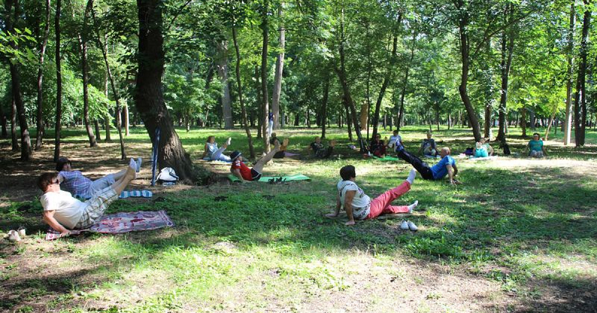 В Чистяковской роще продолжаются занятия восстановительной гимнастикой на открытом воздухе для граждан старшего поколения. Желающих принять в ней участие становится все больше.