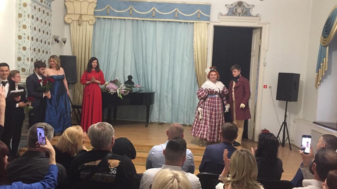 Участники студии исторического танца «Южное наследие» создали атмосферу Онегинского бала, исполнив мазурку, а студенты краснодарского государственного института культуры и искусства прочитали стихотворения и отрывки из поэм и прозы.