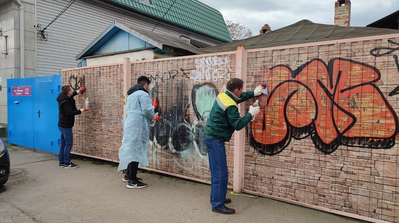 В Центральном округе прошел субботник на улице Горького. Около 100 специалистов окружной администрации и сотрудников структурных подразделений города Краснодара привели в порядок 8 кварталов. Работы шли на участке от Дмитриевской Дамбы до ул. Красной. Муниципальные служащие красили заборы, смывали граффити на фасадах и архитектурных ограждениях, очищали опоры, столбы и линии электропередач от незаконной рекламы и объявлений.