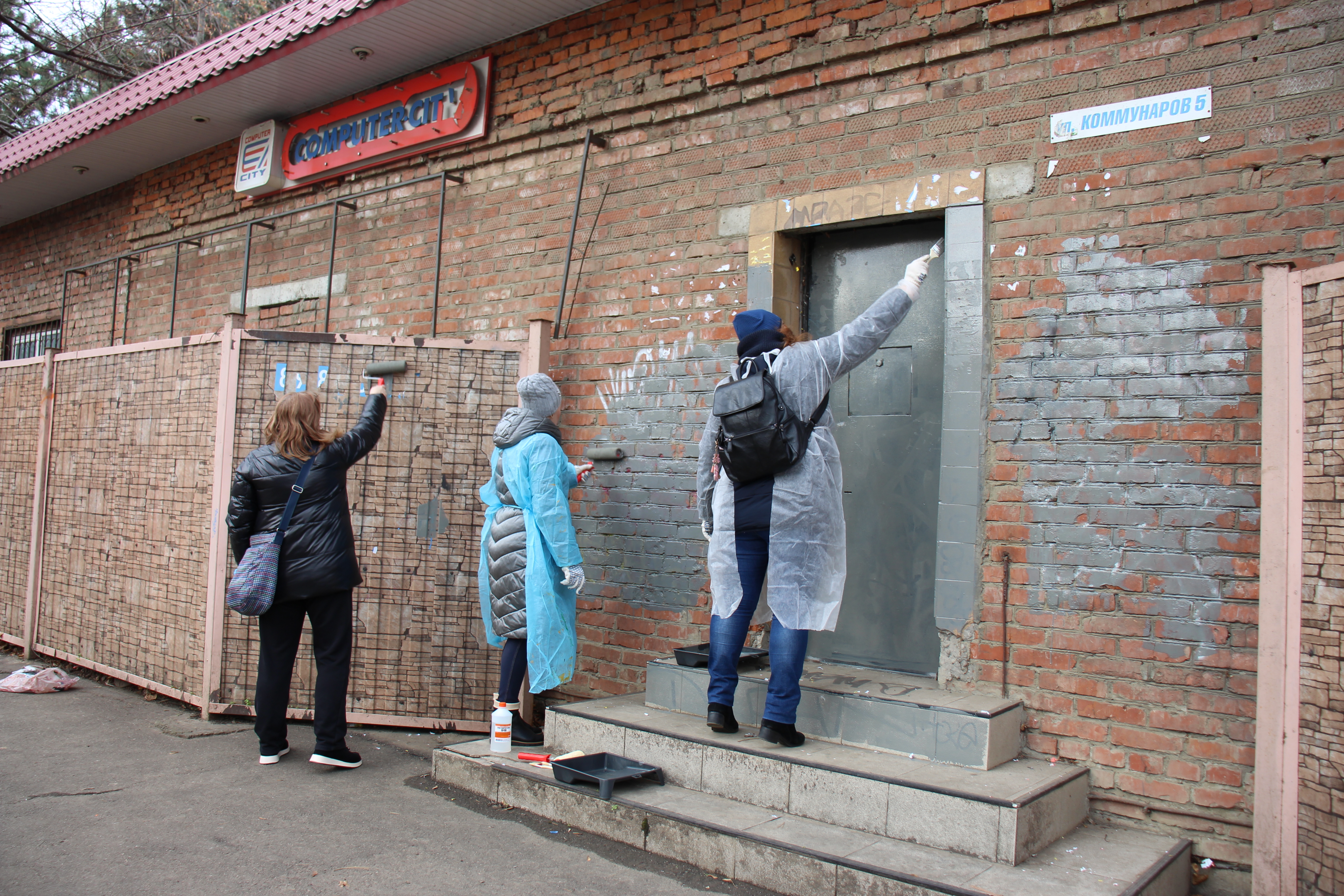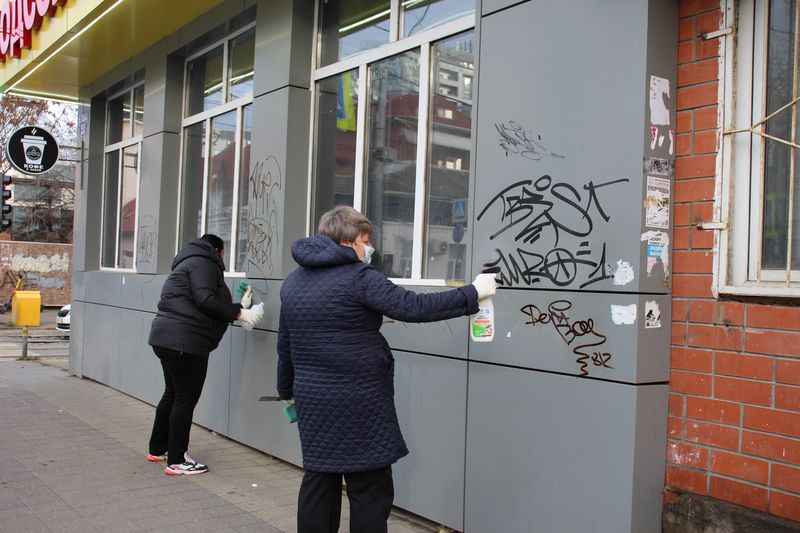 Более 150 специалистов окружной администрации и сотрудников структурных подразделений города Краснодара приводили в порядок улицу Коммунаров. Работы шли от ул. Постовой до ул. Офицерской. Муниципальные служащие смывали граффити и наркотрафареты на фасадах, заборах и сооружениях, очищали опоры, столбы и линии электропередач от незаконной рекламы и объявлений, красили коммуникационные шкафы и оградительные столбики.