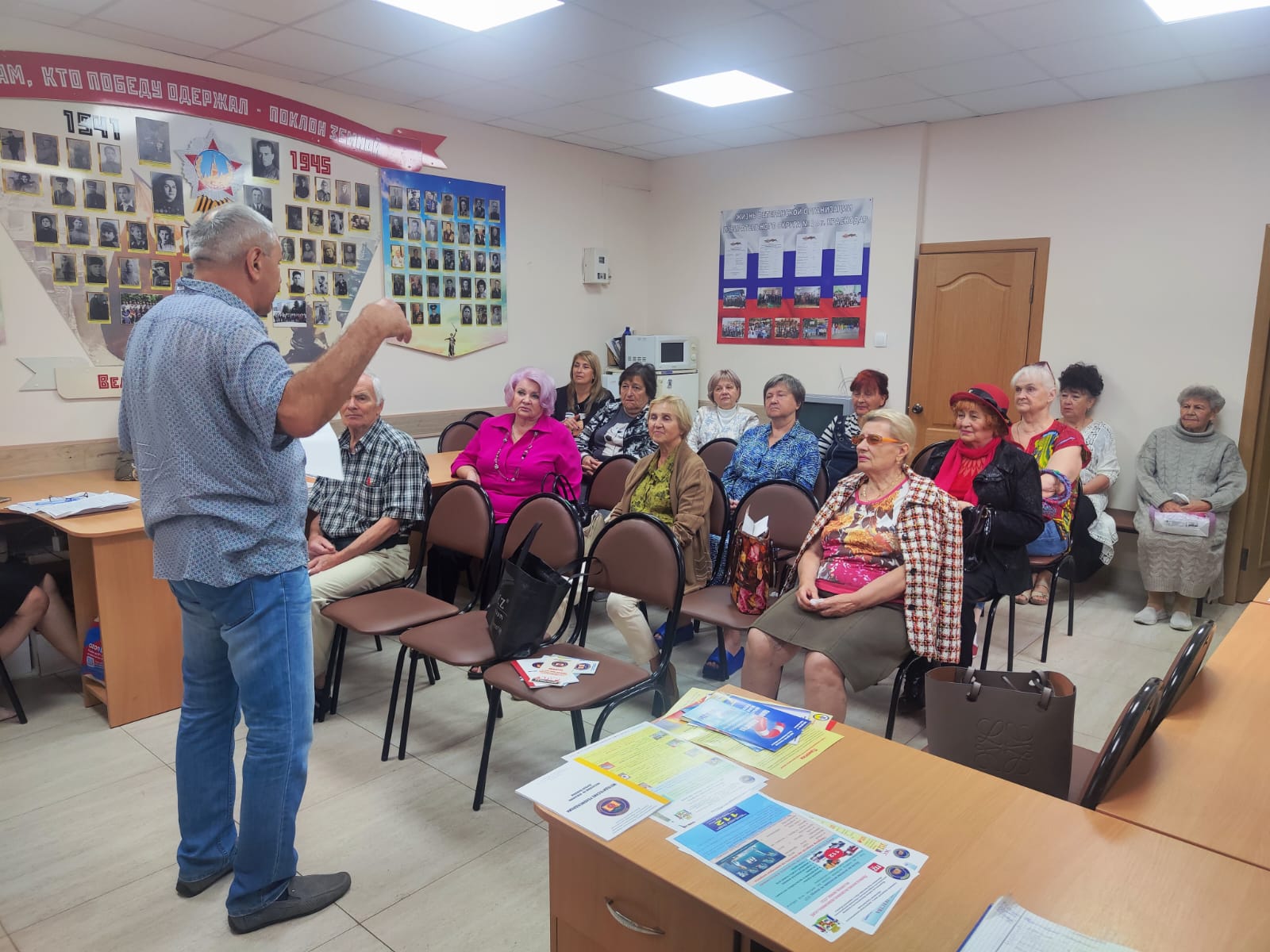 25 сентября 2025Встреча прошла в ТЦ № 38. Совещание открыл преподаватель курсов ГО Александр Боглачев, который рассказал о действиях населения при ЧС, дал рекомендации по оказанию помощи пострадавшим, подробно остановился на соблюдении мер пожарной безопасности в зимний период.