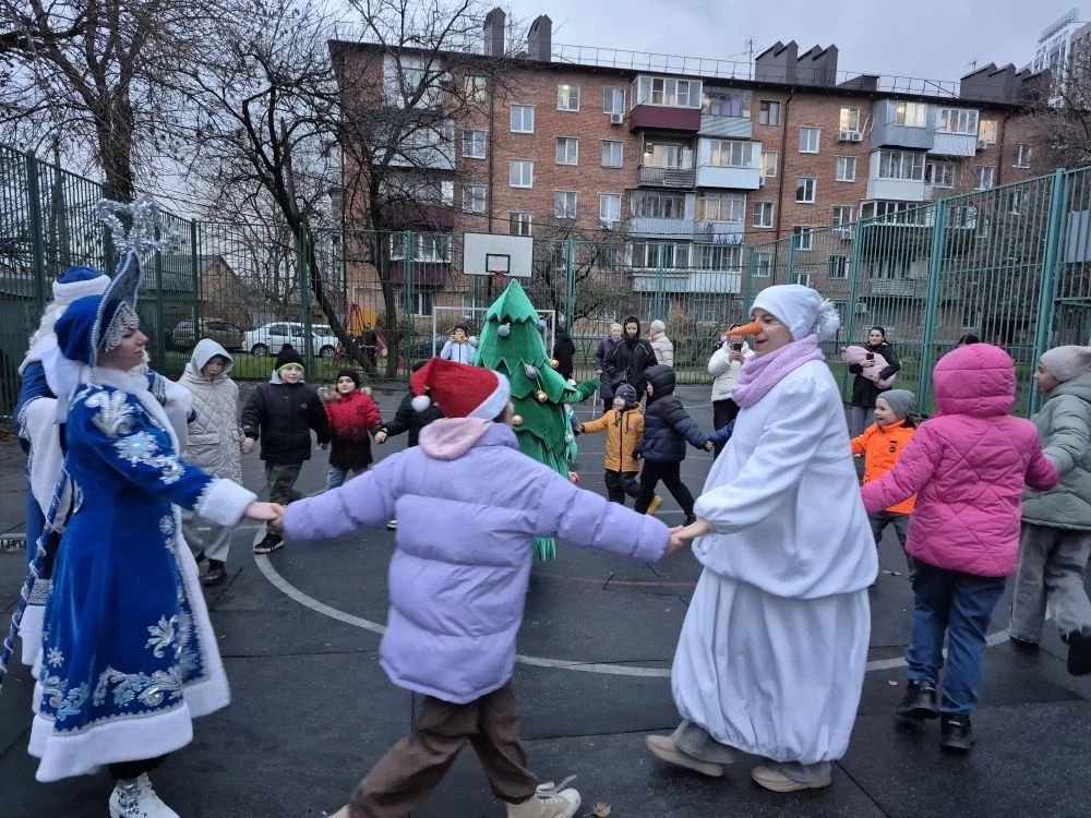 26 декабря 2025Первыми счастливчиками стали ребята с улиц Колхозной, 24 и Березанской, 89. Для них развернулись настоящие игровые программы с зимними викторинами, песнями, танцами и забавами.
