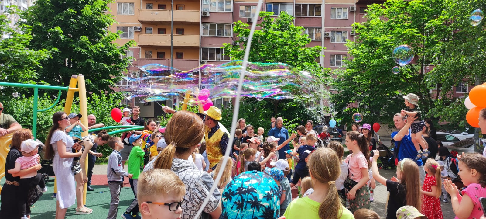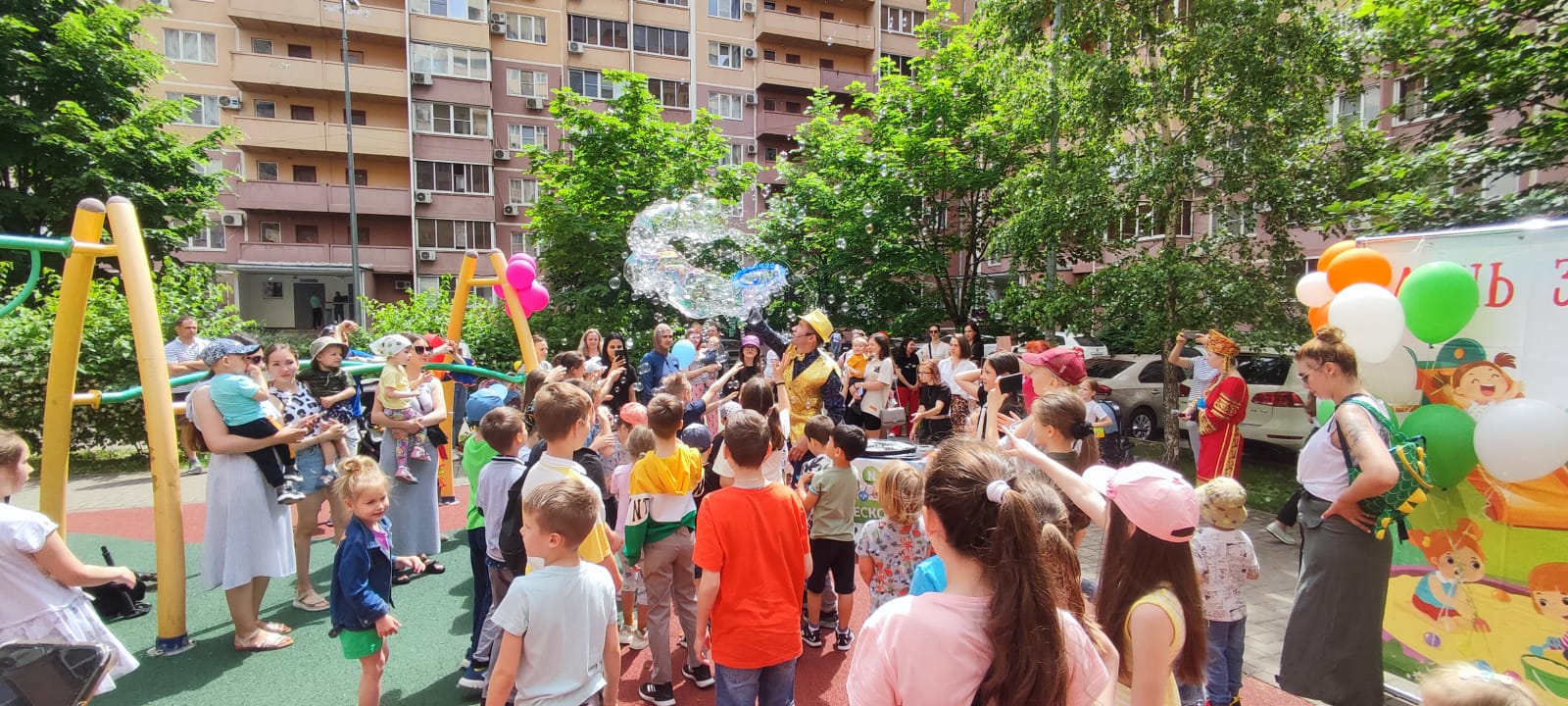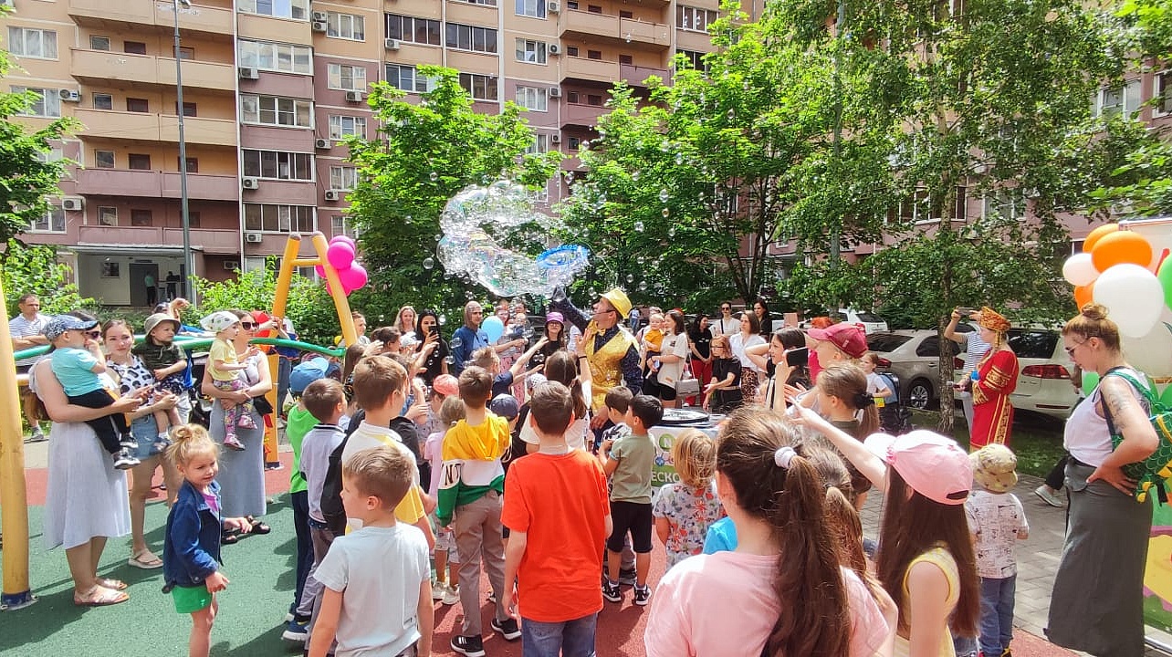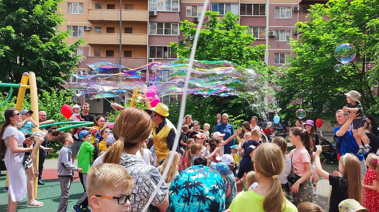 Музыка, ростовые куклы, детский смех и улыбки на лицах детей и их родителей сопровождали всю развлекательную программу. Мальчишки и девчонки активно участвовали в веселых конкурсах, играх и викторинах. Кульминацией праздника стало шоу мыльных пузырей, научно-познавательные опыты и мастер-класс по современным танцам.
