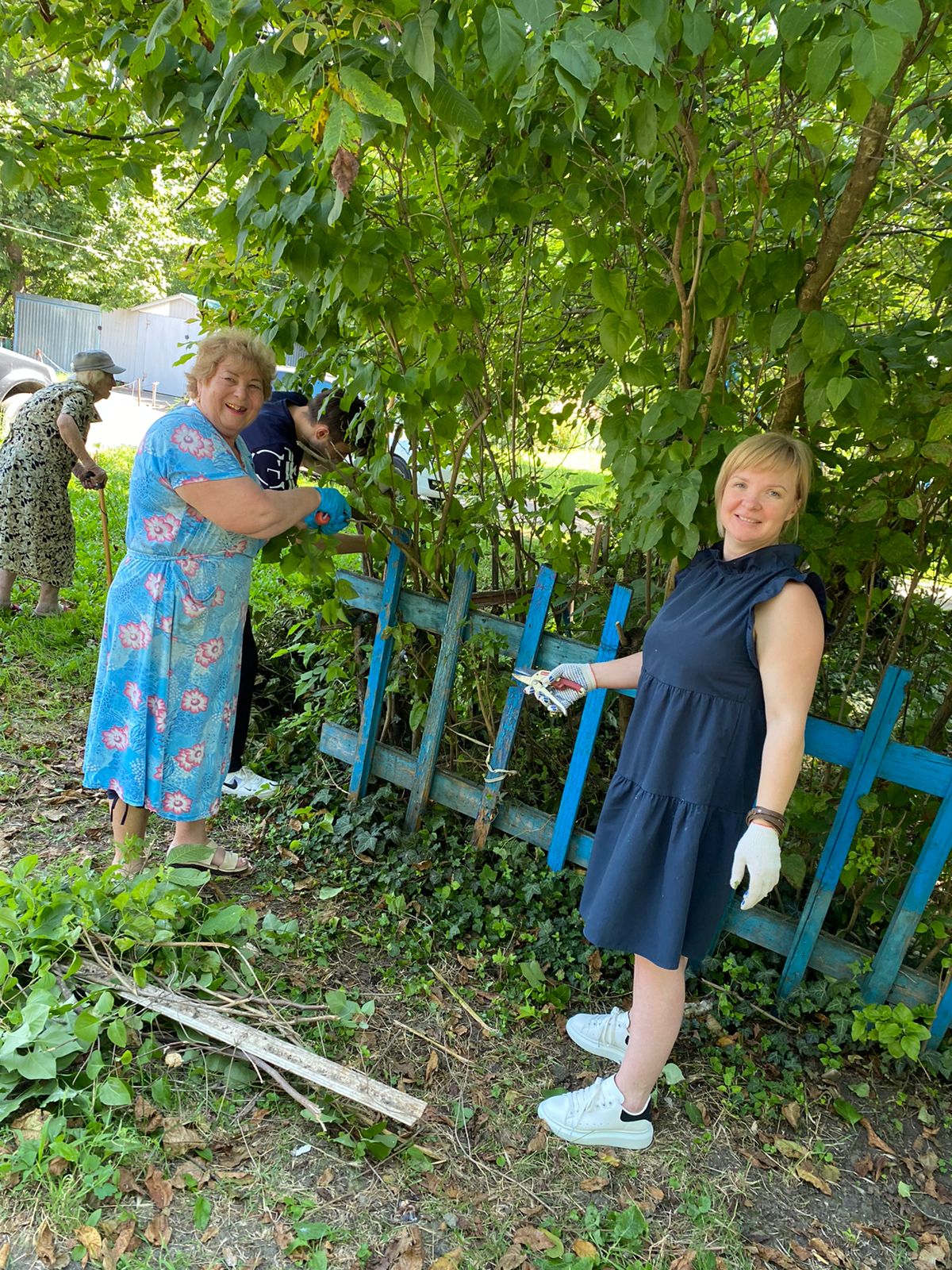 Во дворе у труженицы тыла Елены Потаповны Гонтарь прошел субботник