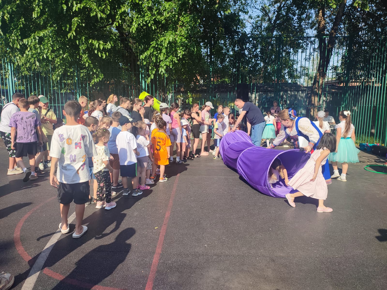 Настроение — отличное, положительных эмоций — море. Мальчишек и девчонок встречают Ростовые куклы, сказочные герои, клоуны и аниматоры. Артисты городского Дома культуры Центрального округа подарили веселую развлекательную программу.