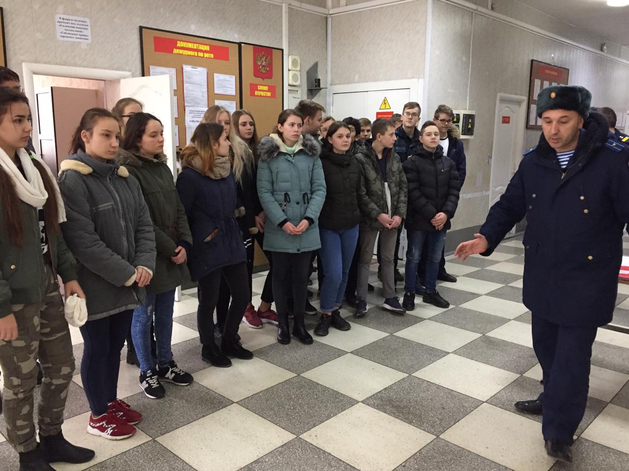 Ребят встретил на КПП подполковник Олег Онуфриев. Ребята поздравили военнослужащих с праздником, передали от школы подарки. После чего Олег Онуфриев провел экскурсию по части. Воинская часть с казармами, полигон для занятий, военная техника различных видов - всё это увидели собственными глазами мальчики старших классов во время экскурсии. Военная служба предстоит каждому мужчине, и поэтому такая экскурсия вызывает у ребят большой интерес, оставляет самые яркие впечатления.