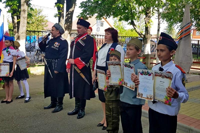 6 мая в станице Старокорсунской в МБОУ СОШ №86 прошёл смотр строя и песни, приуроченный к 74-й годовщине Победы в Великой Отечественной войне. Организаторами мероприятия стали казаки-наставники Екатеринодарского районного казачьего общества и атаман ХКО «Старокорсунский казачий курень» Михаил Литвиненко.
