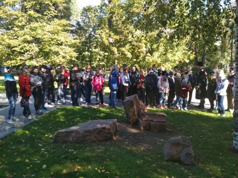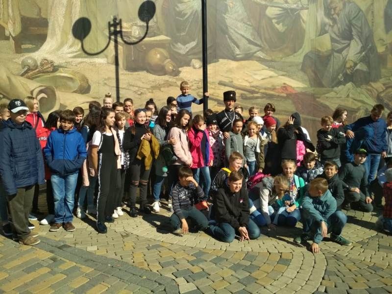 Экскурсия началась от камня основания города Краснодара, с первых минут учащиеся с должным вниманием слушали увлекательный рассказ их наставника о том, как казаки осваивали Краснодарские земли, как отстаивали родную землю совершая ратные подвиги. Затем Сергей Леонидович провел казачат по самым значимым местам центра нашего города: Храм Святого Александра Невского, Памятник Екатерине II, дворец атаманов, Екатерининский парк, здание Кубанского казачьего хора, библиотека им. А.С.Пушкина, памятник А.С.Пушкину.