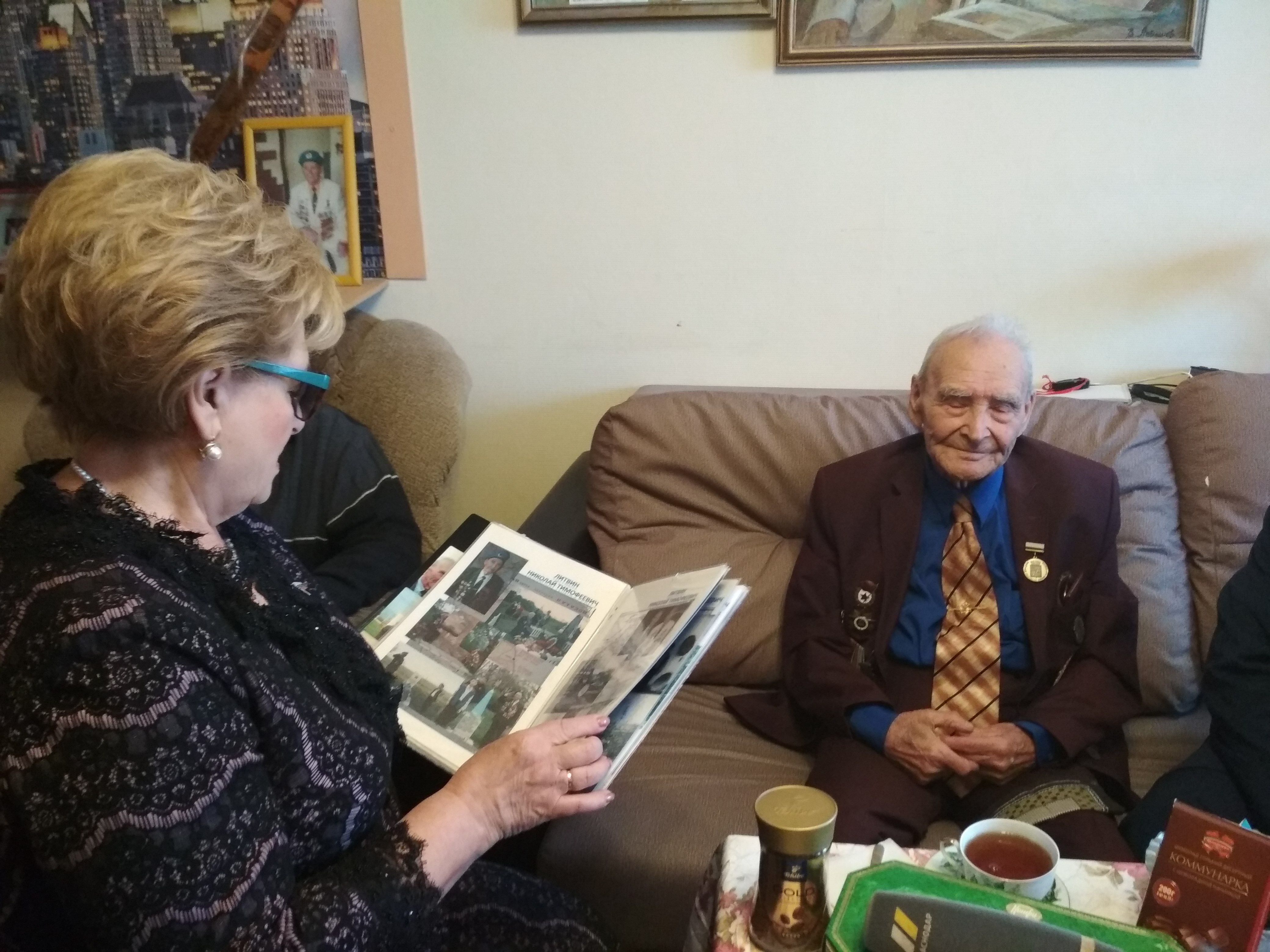Дальнейшее общение проходило за чашкой чая в гостиной, украшенной портретами Николая Тимофеевича и его младшего брата Александра Тимофеевича Литвина, ефрейтора, командира отделения 473-го стрелкового полка 154-й стрелковой дивизии, погибшего на фронте в декабре 1943 года.