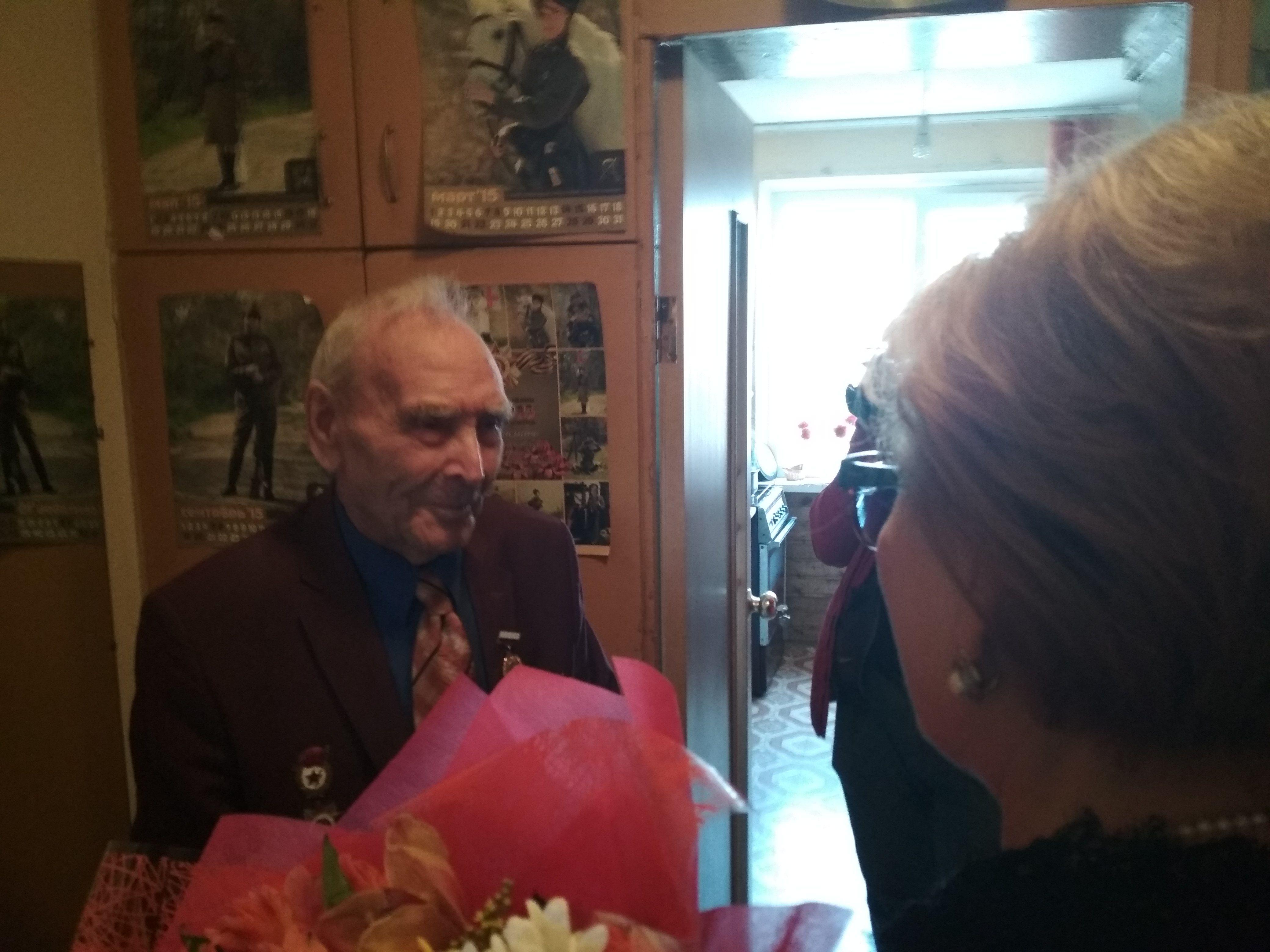 Участник освобождения Краснодара проживает в настоящее время в одном из многоквартирных домов Комсомольского микрорайона. Ветеран, принимавший участие в освобождении столицы Кубани от оккупантов, встретил в прихожей почетных гостей, поздравивших его с памятной датой и вручивших цветы и памятные подарки.