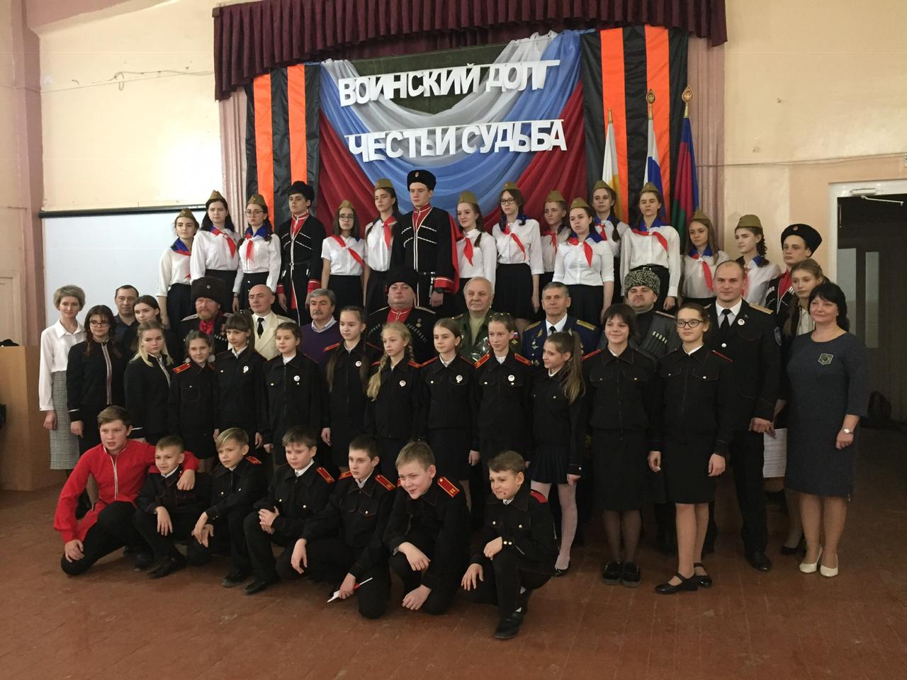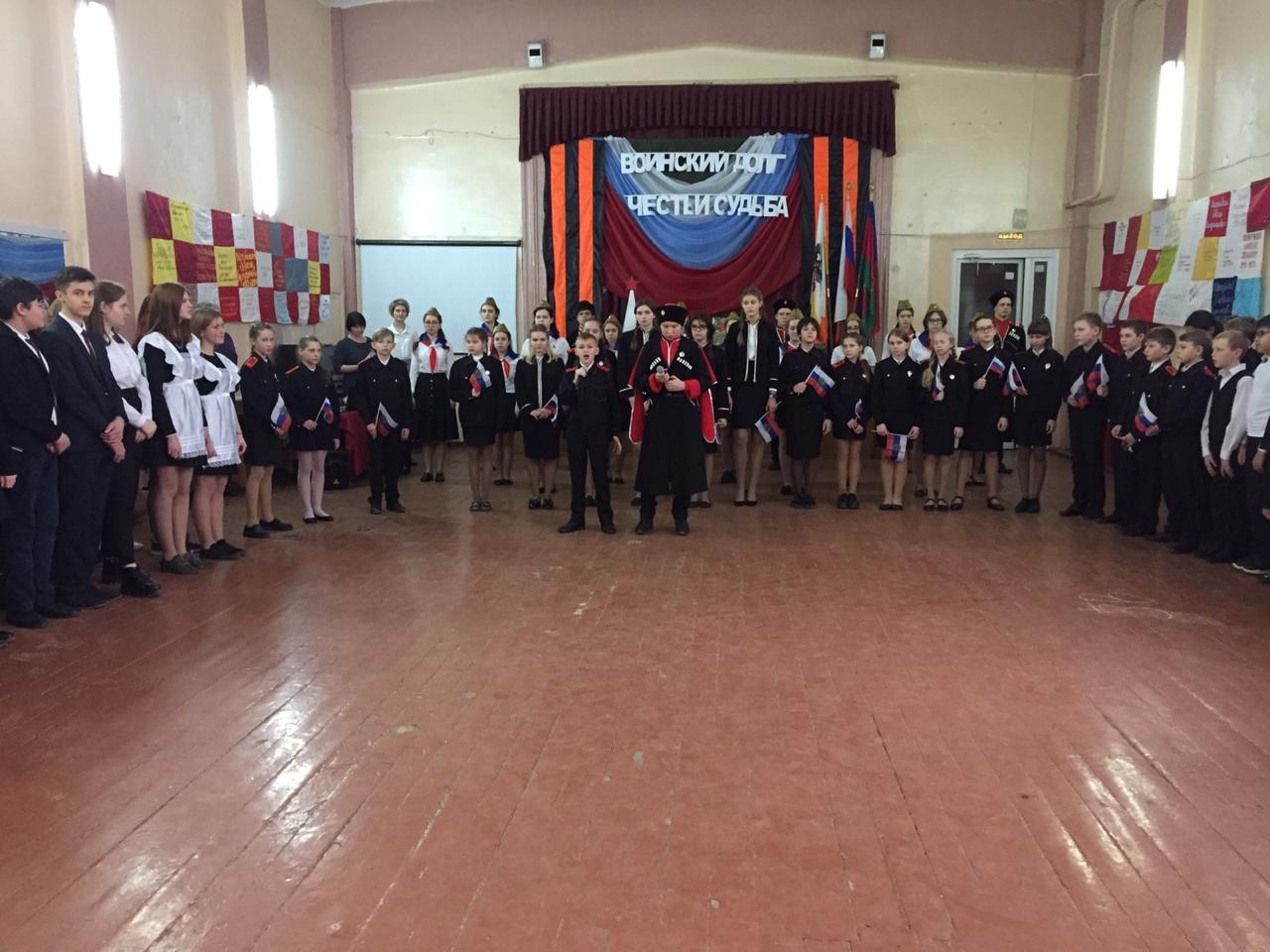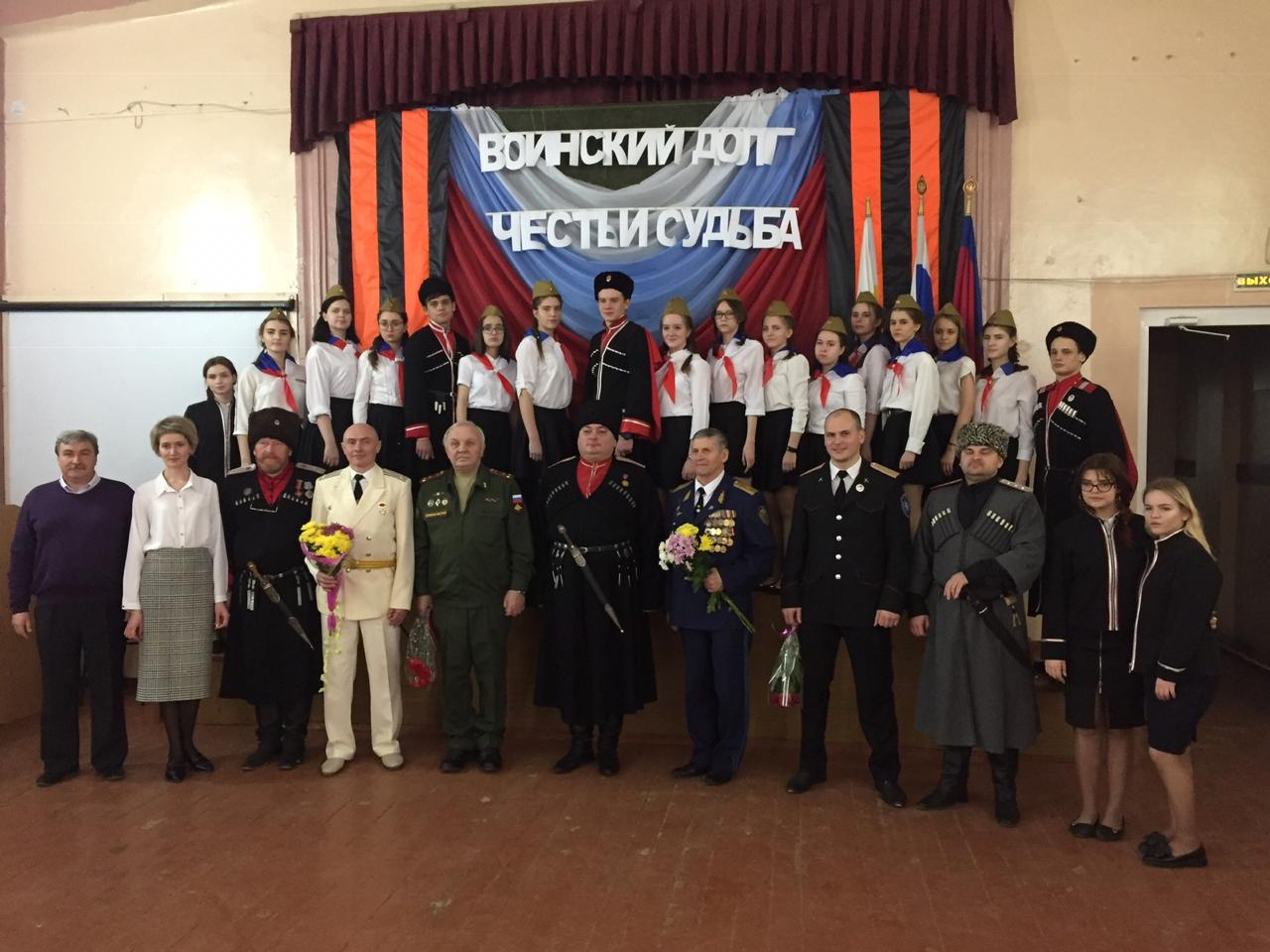 25 января 2019В мероприятии, прошедшем 25 января 2019 года, приняли участие педагогический состав и учащиеся школы, казаки Пашковского станичного казачьего общества, офицеры запаса-ветераны Вооруженных Сил.
