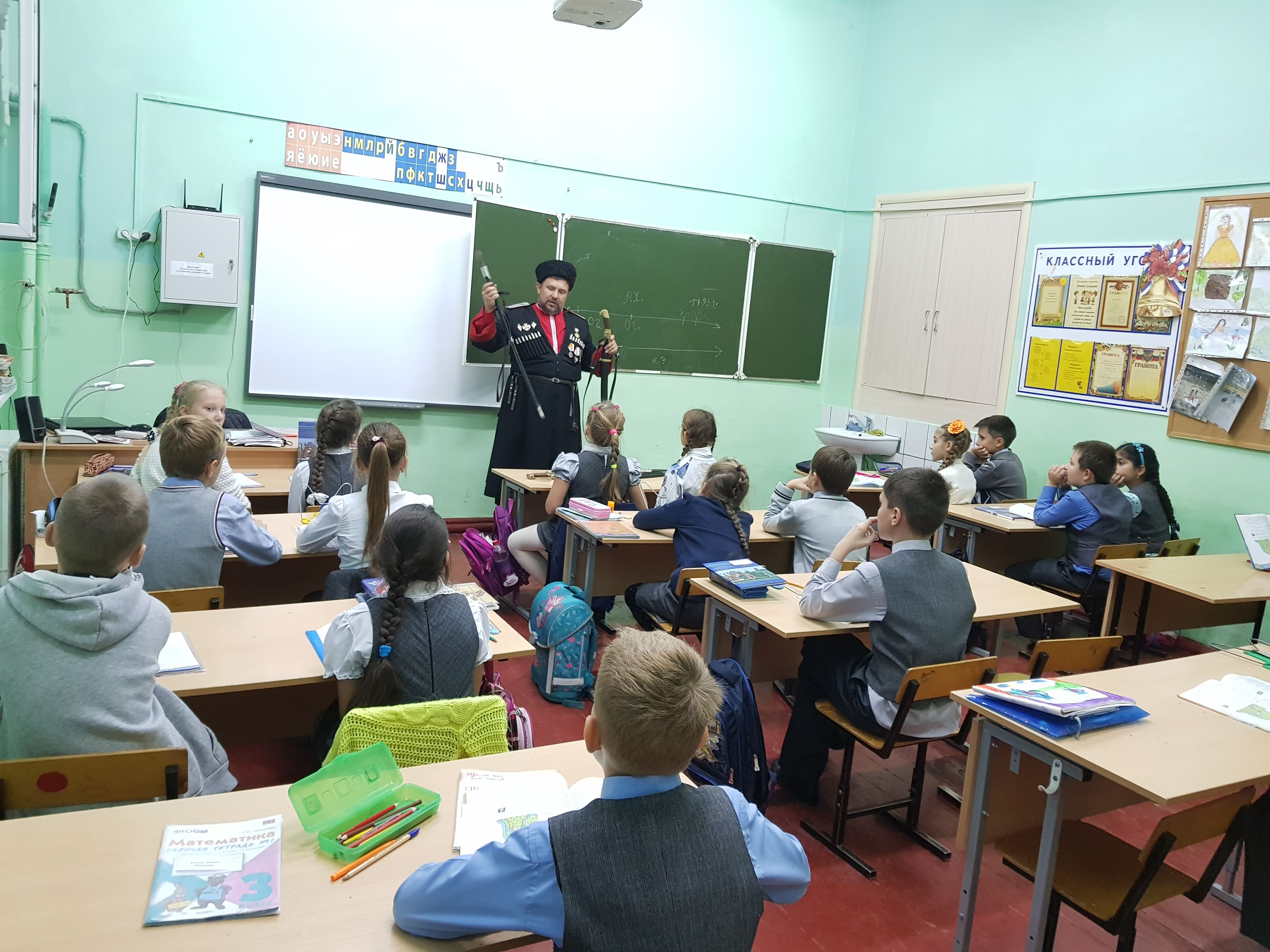 Он познакомил ребят с казачьими регалиями, затронул тему истории казачества в годы Великой Отечественной войны. Рассказал о казачьих частях в Красной армии, о том, что вражеские армии всегда считали казаков опасными противниками.