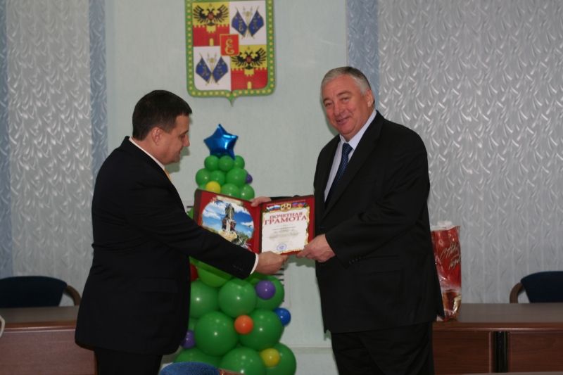 В канун Нового года главе Карасунского внутригородского округа города Краснодара по поручению Губернатора Краснодарского края Александра Ткачёва представитель министерства Михаил Монаенко вручил Почётную Грамоту.