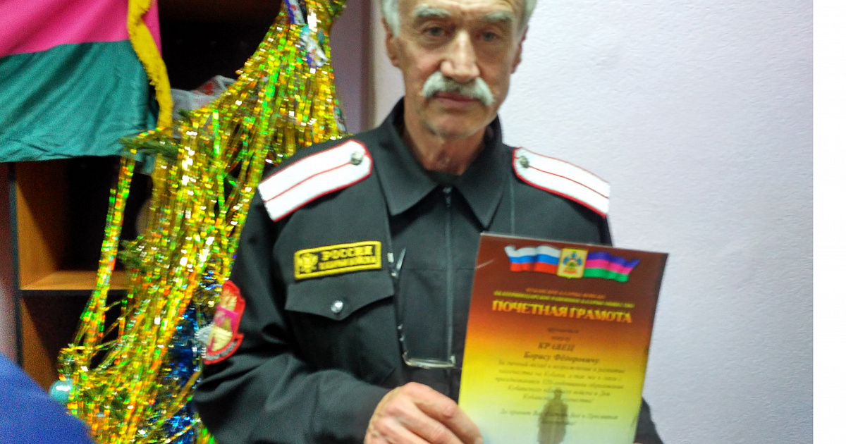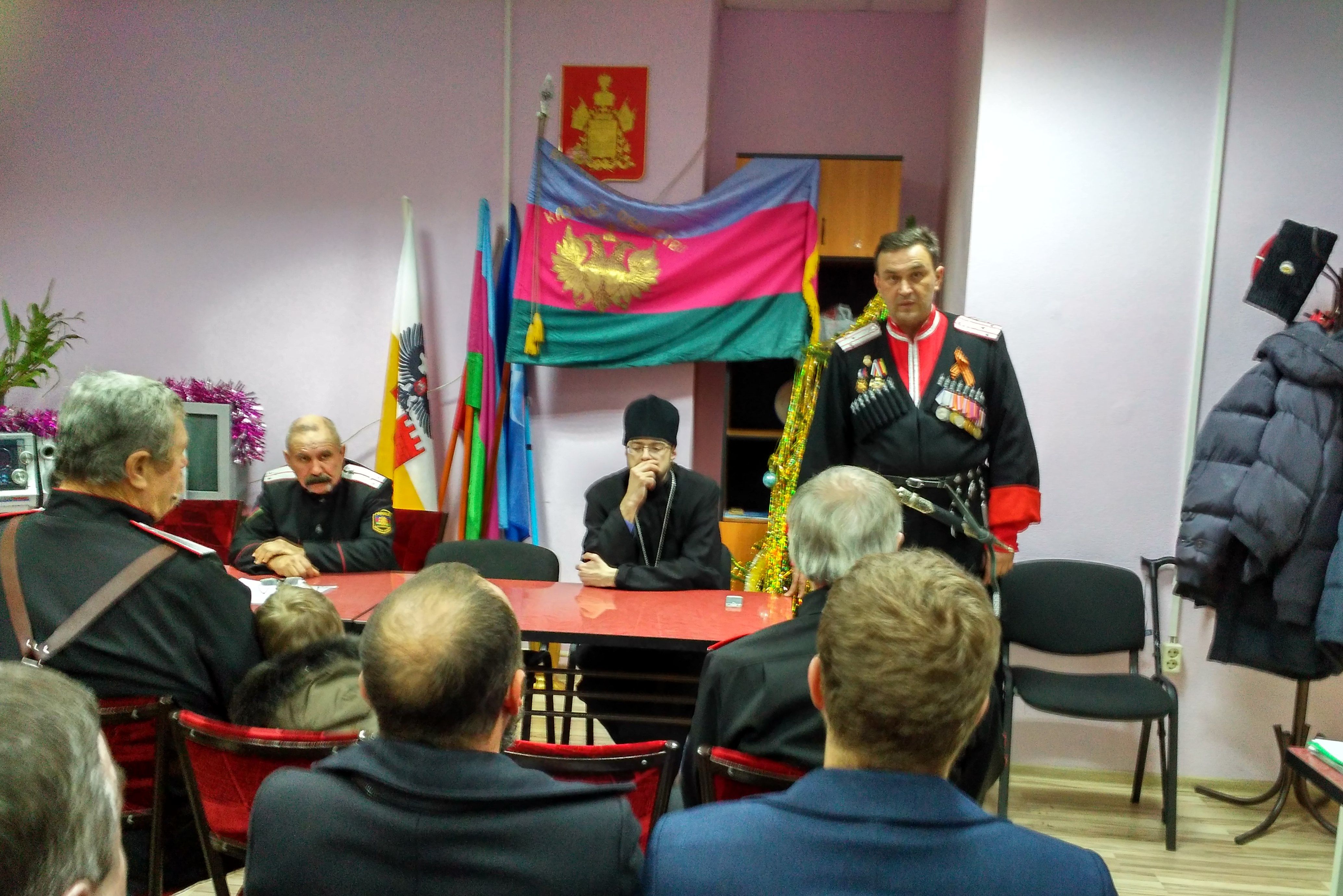 29 декабря 2016В территориальном центре по ул. Уральская, 168 прошло отчетно-выборное собрание хуторского казачьего общества «Восточный курень». На нём присутствовали казаки, есаул, духовное лицо, иеромонах Алексий. Вел собрание исполняющий обязанности главы казачьего сбора, войсковой старшина, Павлик Василий Иванович. Были рассмотрены вопросы участия молодых казаков в приёме на военную службу. Заслушаны лица, находящиеся в президиуме собрания, которые рассказали о деятельности казачьего общества и о его насущных проблемах. А также, была вручена почетная грамота, есаулу Кравец Б.Ф.