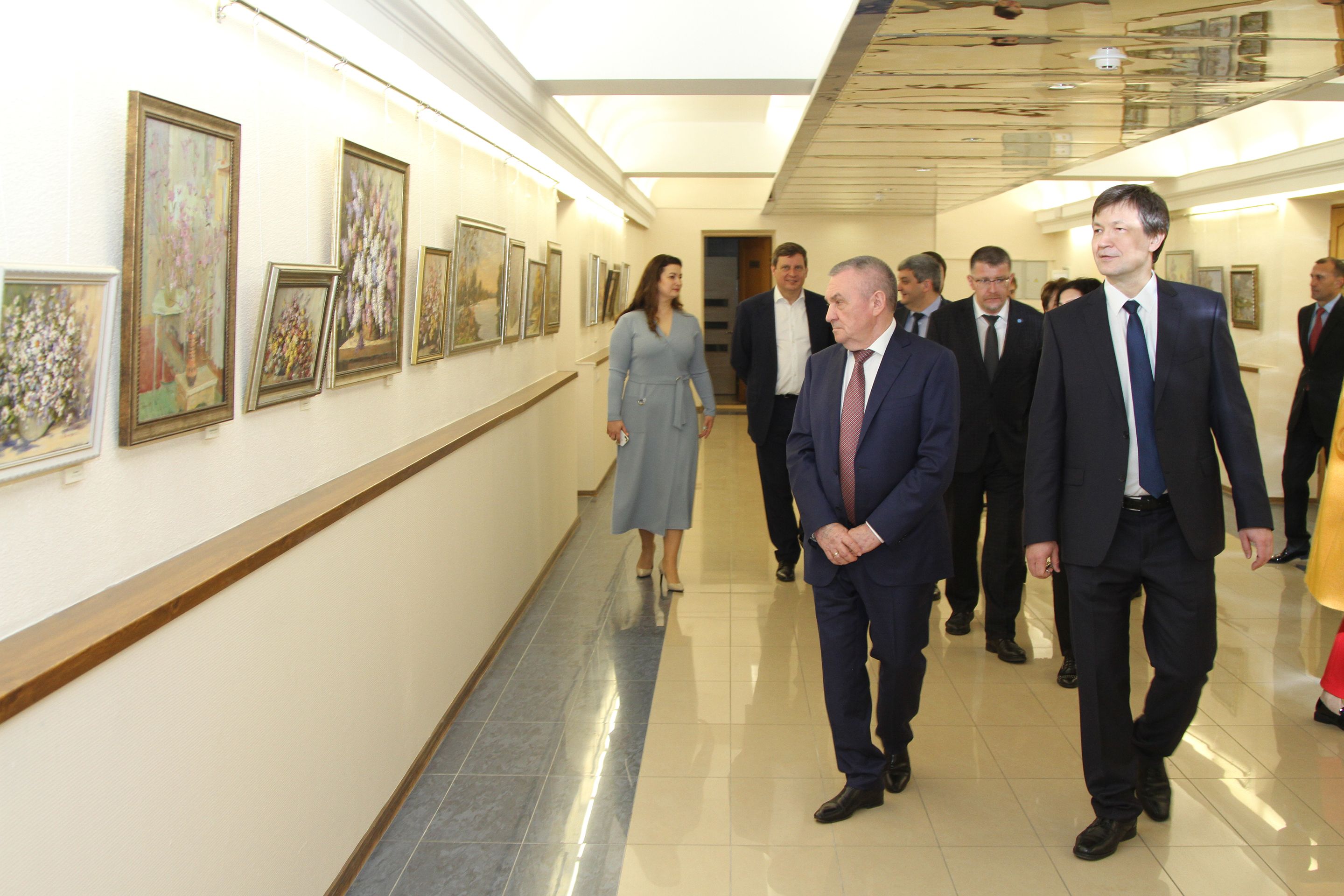 Затем гости посетили картинную галерею университета, осмотрели выставку картин члена Союза художников России, заслуженного деятеля искусств Кубани, доцента кафедры живописи и композиции художественно-графического факультета Сергея Владимировича Лымаря «Живопись».