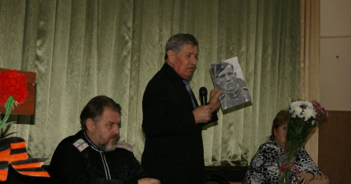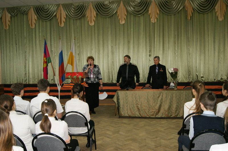 29 января в рамках ежегодного краевого месячника оборонно-массовой и военно-патриотической работы казаки Екатеринодарского районного казачьего общества пригласили героя советского Союза Григория Павловича Хаустова в среднюю образовательную школу № 46 микрорайона Гидростроителей.