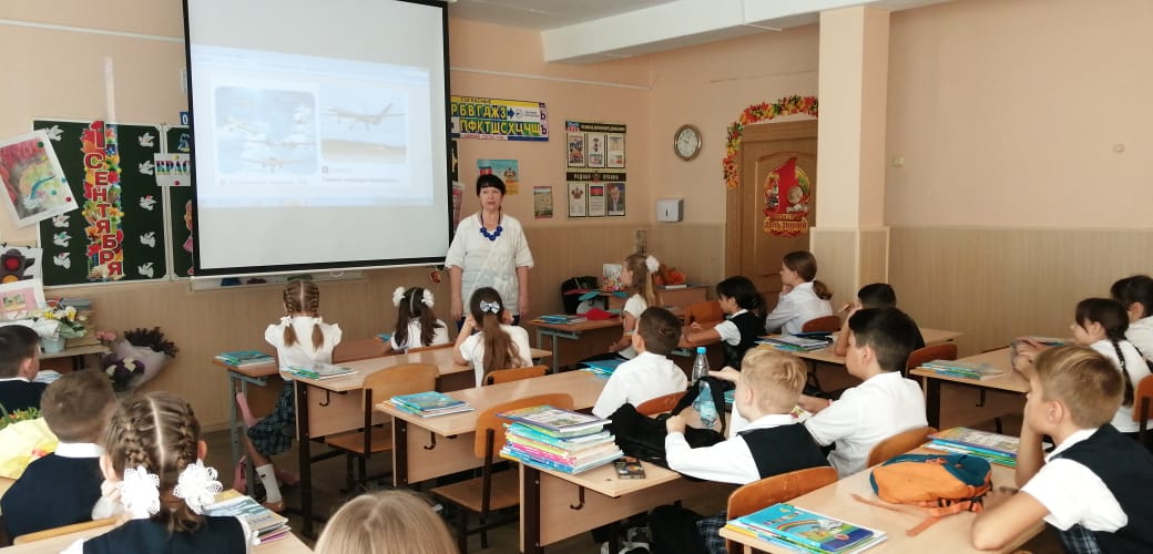 Второй урок был посвящён юбилею Краснодара и юбилею Прикубанского округа. В 2023 году 24 сентября исполняется 230 лет городу Краснодару, а в апреле 2023 года Прикубанскому округу исполнилось 45 лет. Дети с Ольгой Ивановной Давыденко вспомнили и коротко рассказали об известных и знаменитых людях города Краснодара.