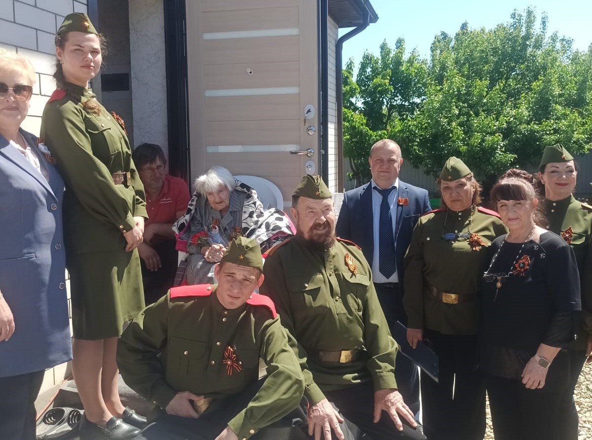 На этот раз артисты вместе с представителями администрации посетили ветеранов войны Юрия Леонидовича Попова, Анну Эммануиловну Згонникову и Веру Степановну Стеглик. Для них прозвучали песни победного мая-45 в исполнении лучших творческих коллективов Краснодара.