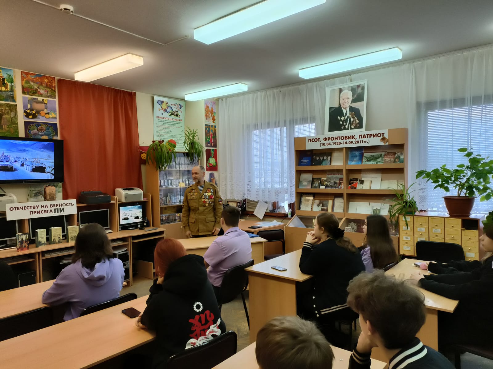 22 февраля 2023С 13 по 21 февраля 2023г. ветераны боевых действий Прикубанского окружного отделения г.Краснодара КРО ООО «Российский Союз ветеранов Афганистана» полковник Чудновский В.А., подполковник Давыдков С.А., майор Набожинский Н.А., майор Таратынов Н.Г., майор Макаров С.М., старший прапорщик Пурцакин В.Г. провели ряд мероприятий, направленных на формирование патриотизма, сохранения памяти о воинской доблести и героизме дедов и отцов, чтобы на примерах их подвигов воспитать благородство, решительность, смелость у подрастающего поколения.