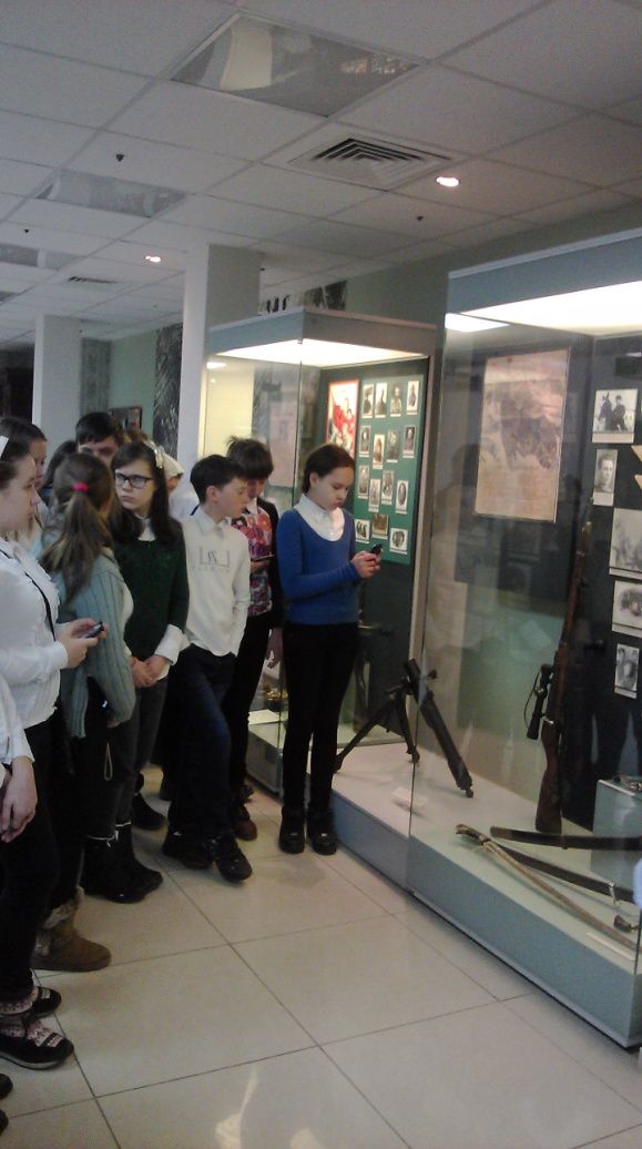 Параллельно с этой экскурсией учащиеся 6 «А» класса познакомились с экспозицией «Кубань в годы Великой Отечественной войн». Ребята с неподдельным интересом слушали рассказ экскурсовода об истории боевых подвигов кубанцев в сражениях с немецко - фашистскими захватчиками.