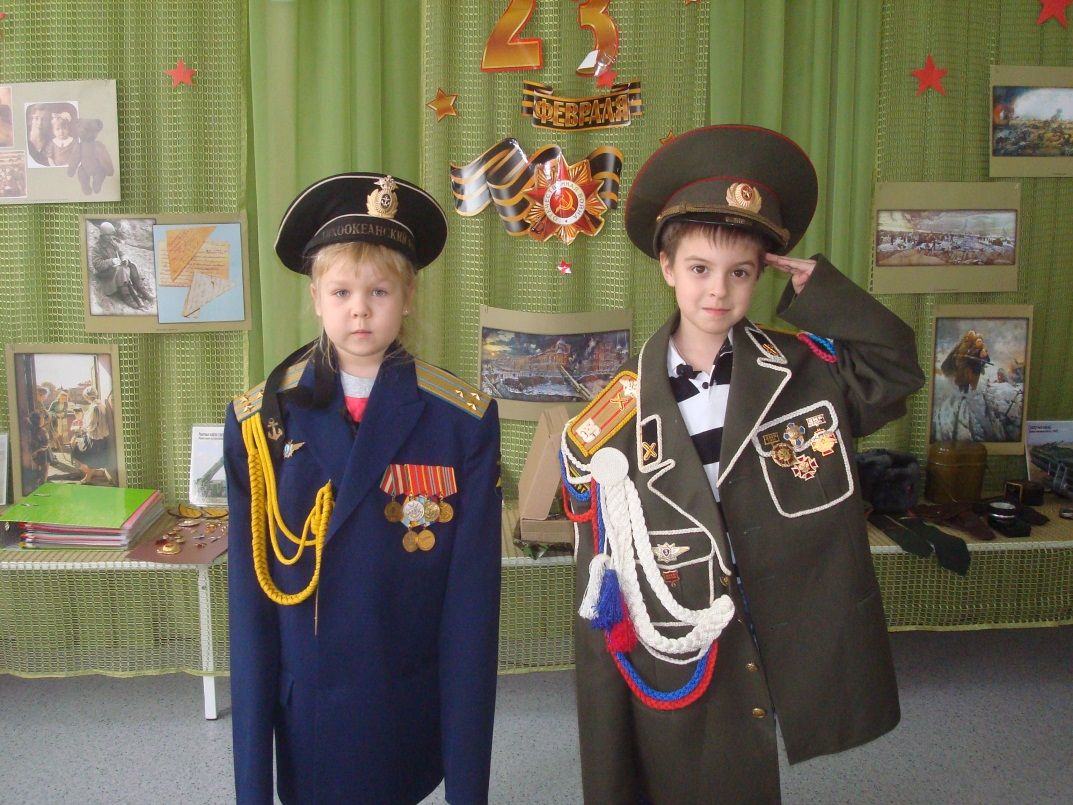 Ребята, впервые побывавшие в музее, послушали рассказ заместителя заведующего о защитниках Отечества, об армии, посмотрели и примерили на себя настоящую военную форму, военную атрибутику. Кроме того, в музее есть фляжки, сумки, макеты военной техники.