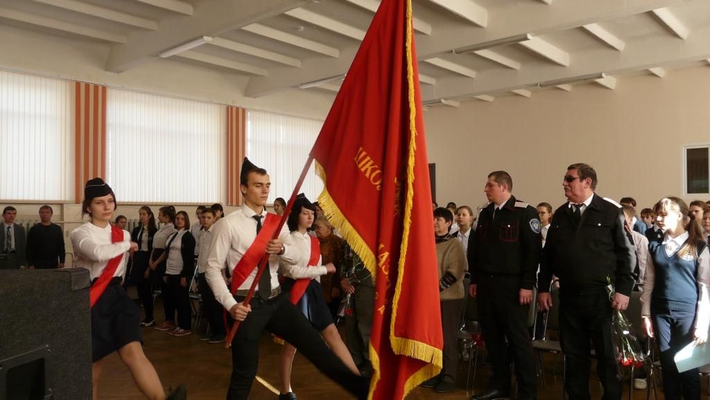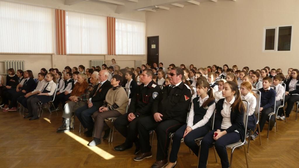 С началом очередного этапа в военно-патриотической работы в школе учащихся поздравили директор школы Чернявская Светлана Фёдоровна, Третьяк Вера Александровна, ветеран Великой Отечественной войны Алёшин Пётр Стефанович, начальник Штаба Прикубанского куреня Кондратьев Николай Юрьевич. На линейке прозвучали стихи и песни о России, о мире. Присутствующие почтили память воинов, павших на полях сражений. Лидер ученического самоуправления школы Мирошниченко Анна вручила всем классам «боевые задания» месячника.