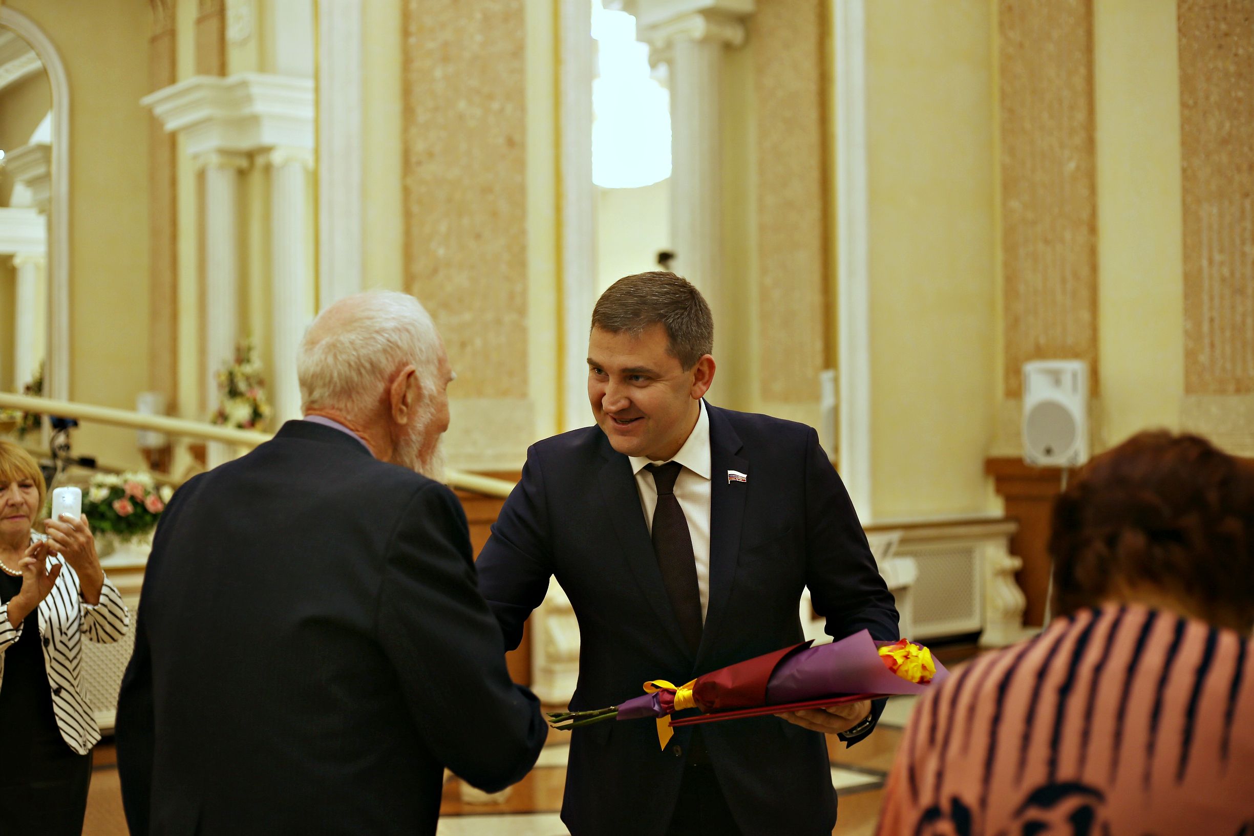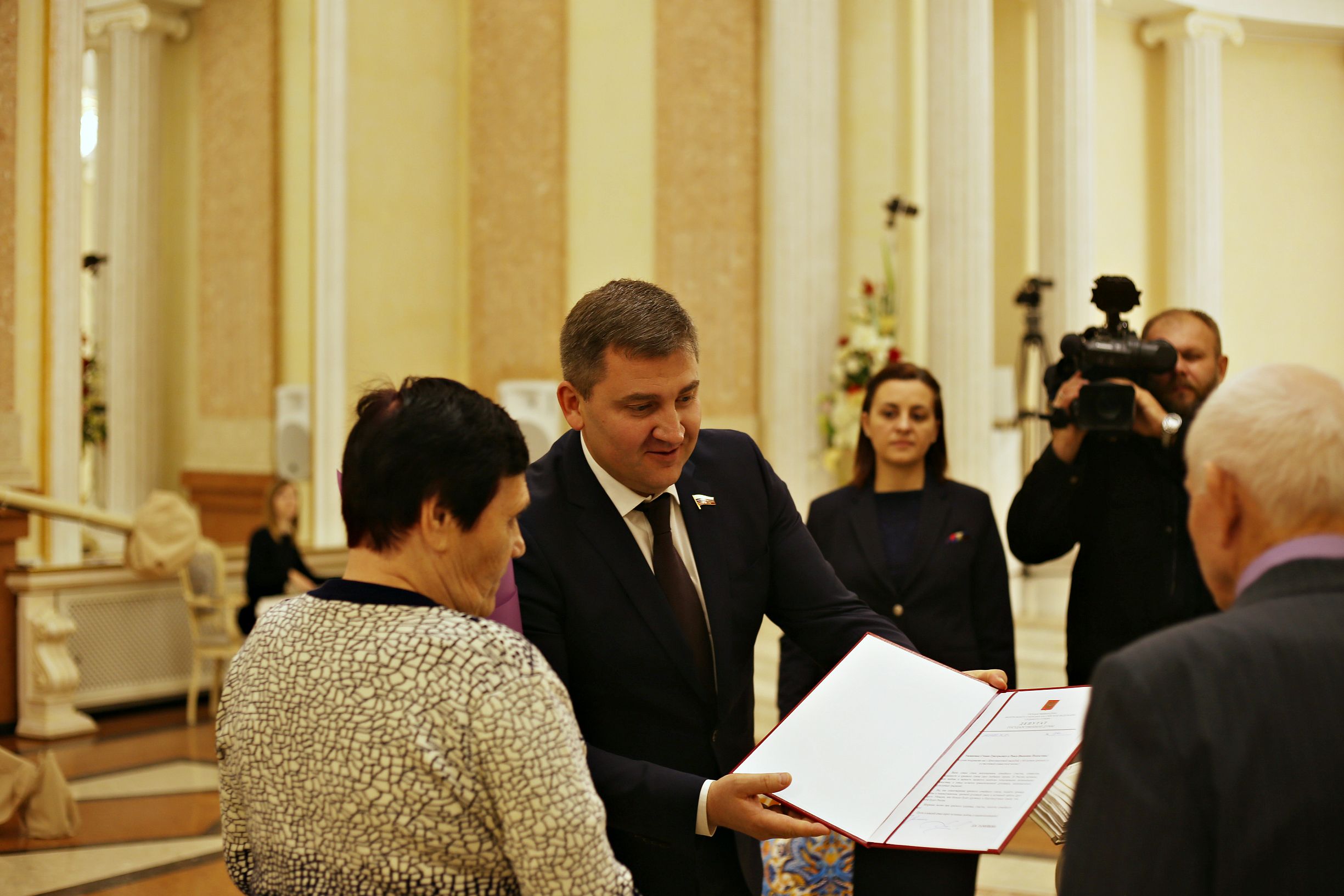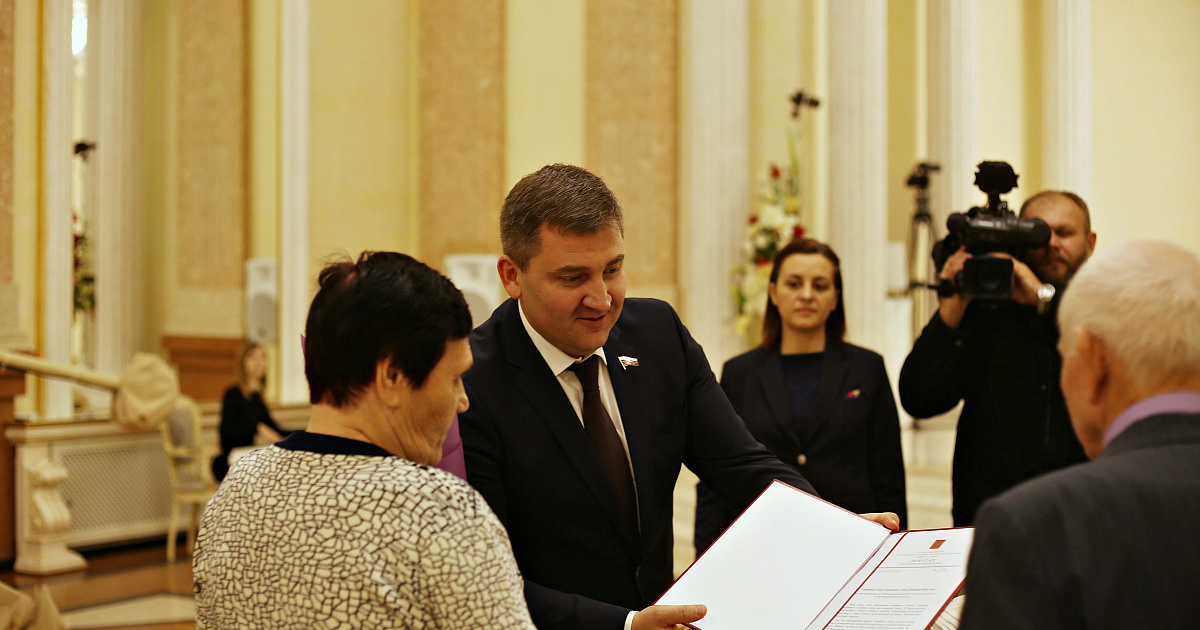В завершении мероприятия, в книге записи актов гражданского состояния семьи вновь, как и 60 лет назад, поставили свои росписи и получили приветственный адрес и памятный подарок от депутата Госдумы, Дмитрия Ламейкина.