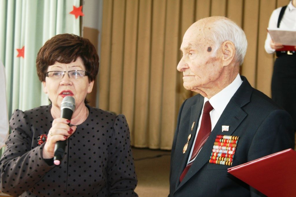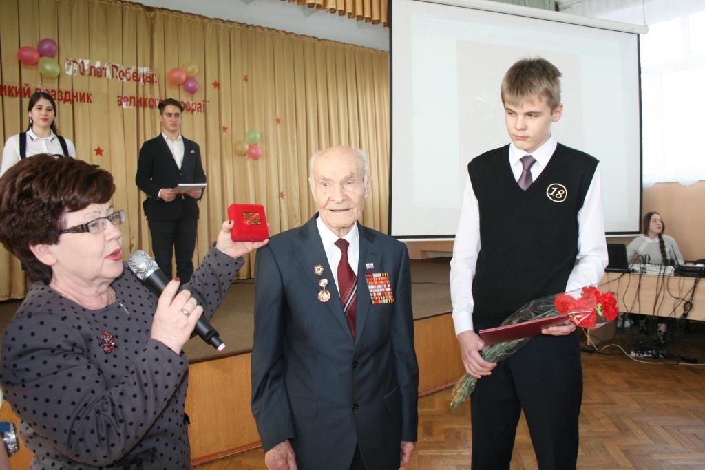 2 февраля 2015Учащиеся гимназии №18 аплодисментами встречали героев самой страшной битвы в истории мира и вручили цветы юбиляру – Михаилу Георгиевчиу Малахову, которому в этот же день исполнилось 90 лет.