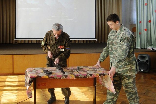 Выступили перед ребятами тимуровский отряд «Звезда», а преподаватель ОБЖ Джанзаков Р.Х. посоревновался с учениками в сборке и разборке автомата Калашникова.