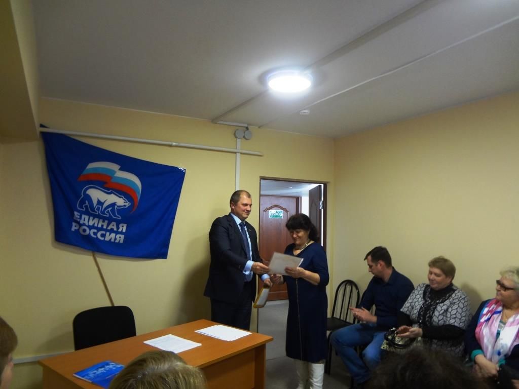 Сергей Владимирович поздравил собравшихся с праздником и вручил благодарственные письма самым активным жителям — председателю ТОС № 481 Лидии Васильевне Швабавр и председателю ТОС № 369 Таисе Никитичне Барабановой.