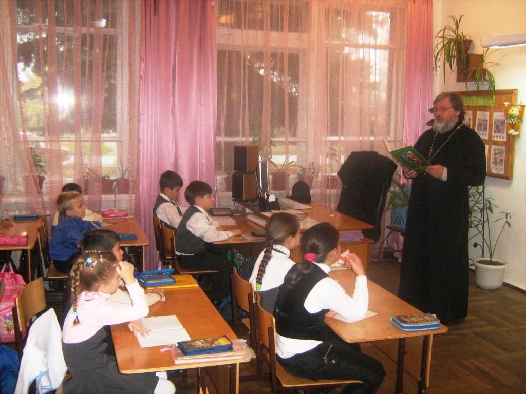 В доступной для учащихся младших классов форме священнослужители побеседовали с детьми о любви к ближнему, к родному городу, краю и патриотизме. Большое внимание они уделили и уважительному и бережному отношению к старикам - ветеранам Великой Отечественной войны.